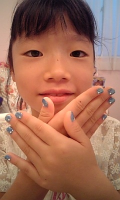 チアダンス☆ 最年少のお客様のご来店! チアダンスの発表会でブルーの衣装に合わせて、ブルーのキラキラネイル☆ 本番はうまくいったかな? 今度チアダンス&衣装を是非見せて下さいね♪楽しみにしてます♪ JUN