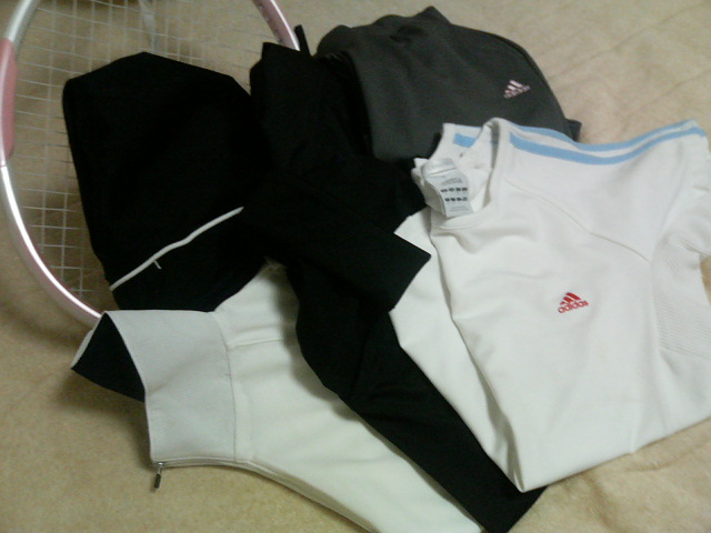 何事も形から… 友人と「今度テニスやろう!」という話になり、 わざわざテニスウエアを買いに行った私♪ とりあえずまだ暑いから半袖…でももう長袖かなぁ。 ハーフパンツ…いやもう長いジャージ…。 結局ムダに上下3着ずつ購入(笑) ラケットとシューズ は誕生日にもらいました〜。 というわけでオール新品で用意バッチリ! 何事もまずは形から…ね★ ちなみに肝心なコートの予約はしていません! (笑) AIKO