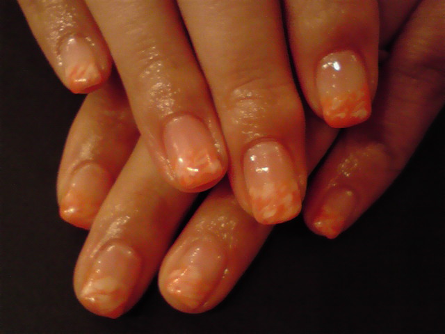 マーブル☆ ドットに続き人気なのが、マーブルちゃんです♪ オレンジ色のグラデーションで、白のマーブルにしました〜。 フローズンヨーグルトみたいでかわいかったです◎ 写真が暗くてすみません。。。 実物の方が何倍もかわいいですよ!! AIKO