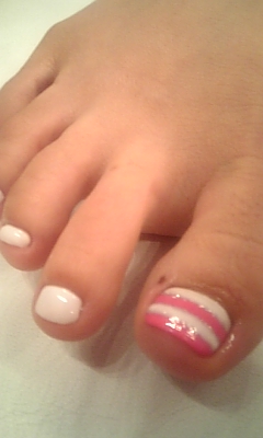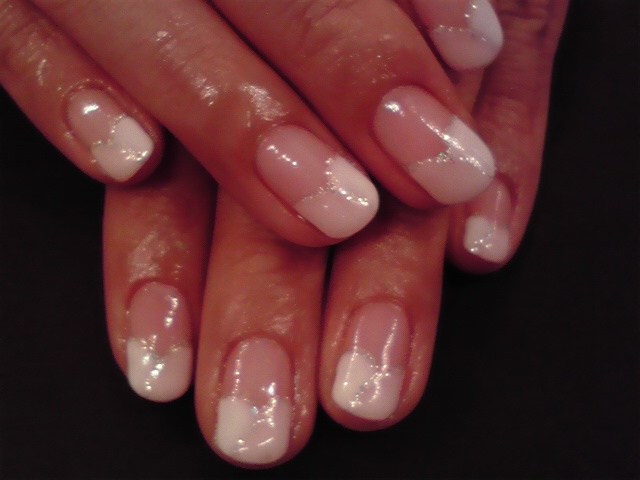 デザインフレンチ☆ 最近人気があるのが、デザインフレンチです! これは、白とベビーピンクの2色を使ってつくりました〜。 境にはシルバーのラメでラインを♪ 少し丸めのラインにしたので、チューリップみたいで とてもかわいかったです★ AIKO