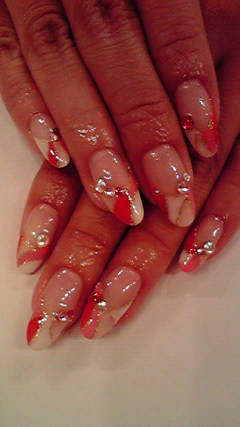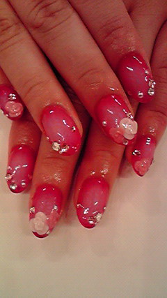 白・淡いピンク・ピンク・赤の4色を使ったデザインフレンチ♡