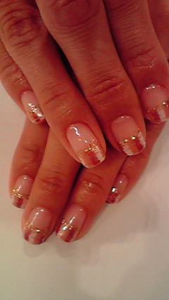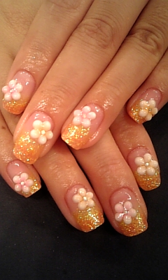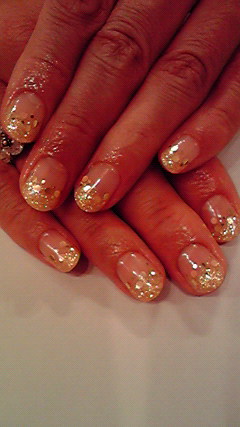 イエローオレンジラメのグラデーションに、ゴールドとパステルオレンジの
