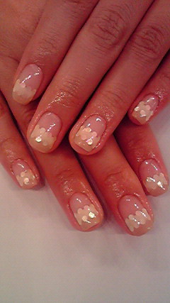 ピンクラメのグラデーションに、3Dでプルメリアのお花を♡