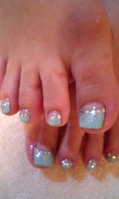 こちらは、涼しげなミントグリーンの逆フレンチにラメとホログラムで華やかさをプラスしました☆