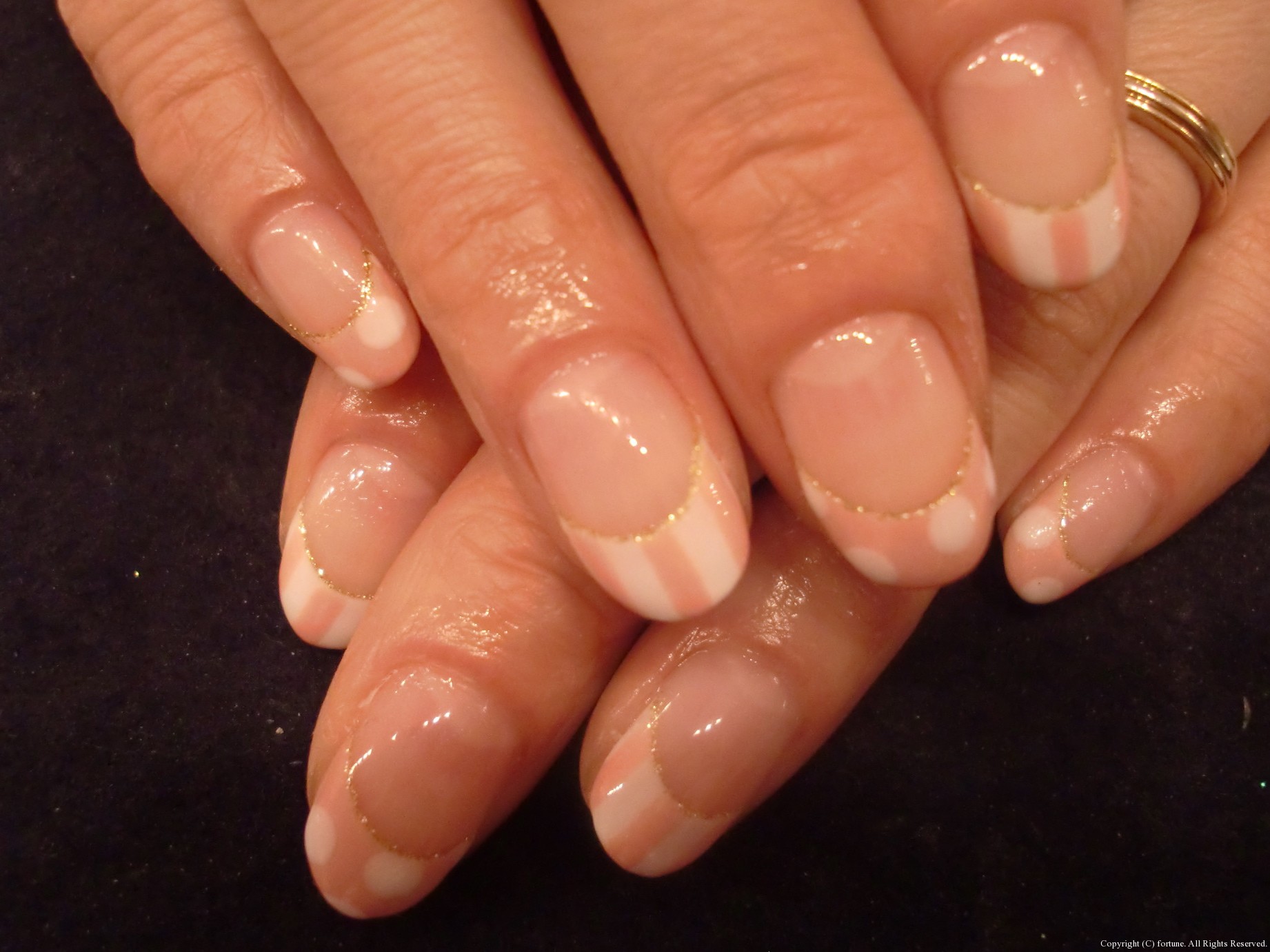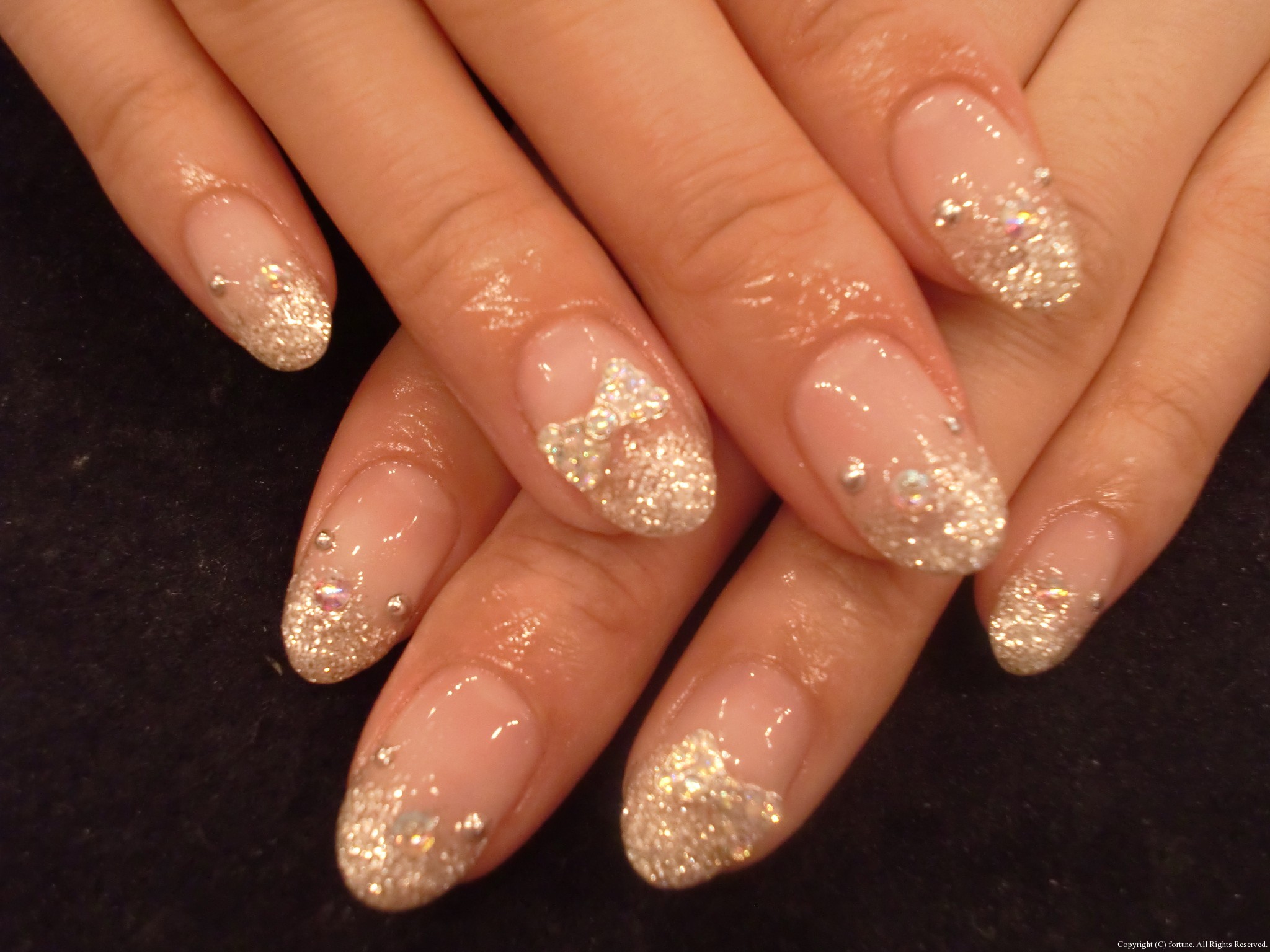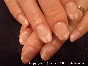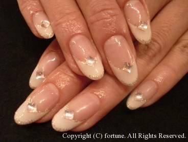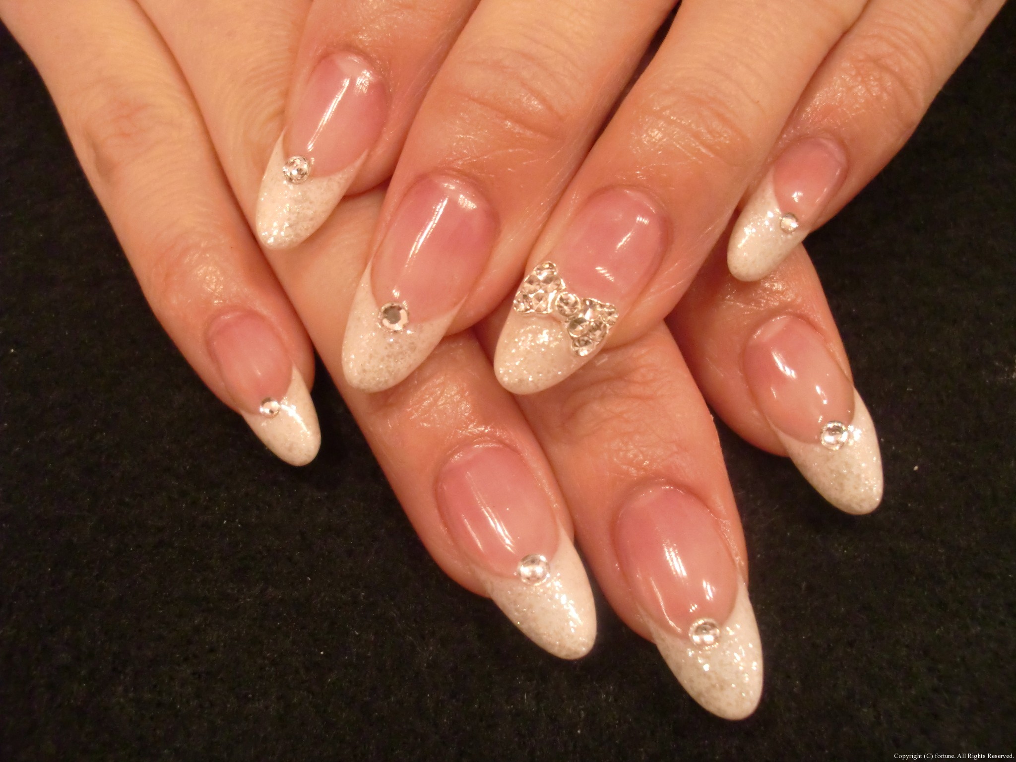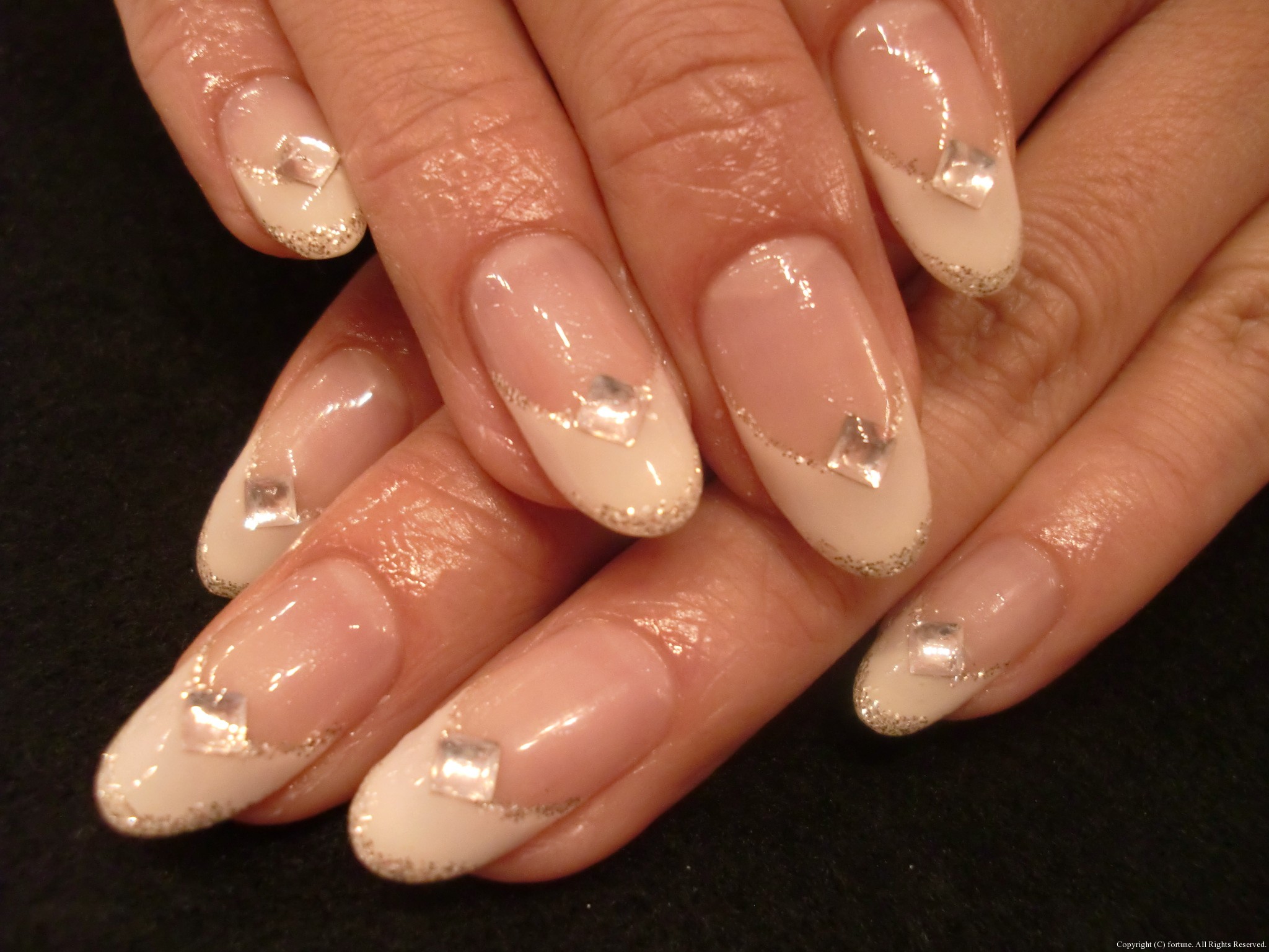 ホワイトフレンチに先端と境目に純銀ラメでキラキラに☆スクエアストーンが