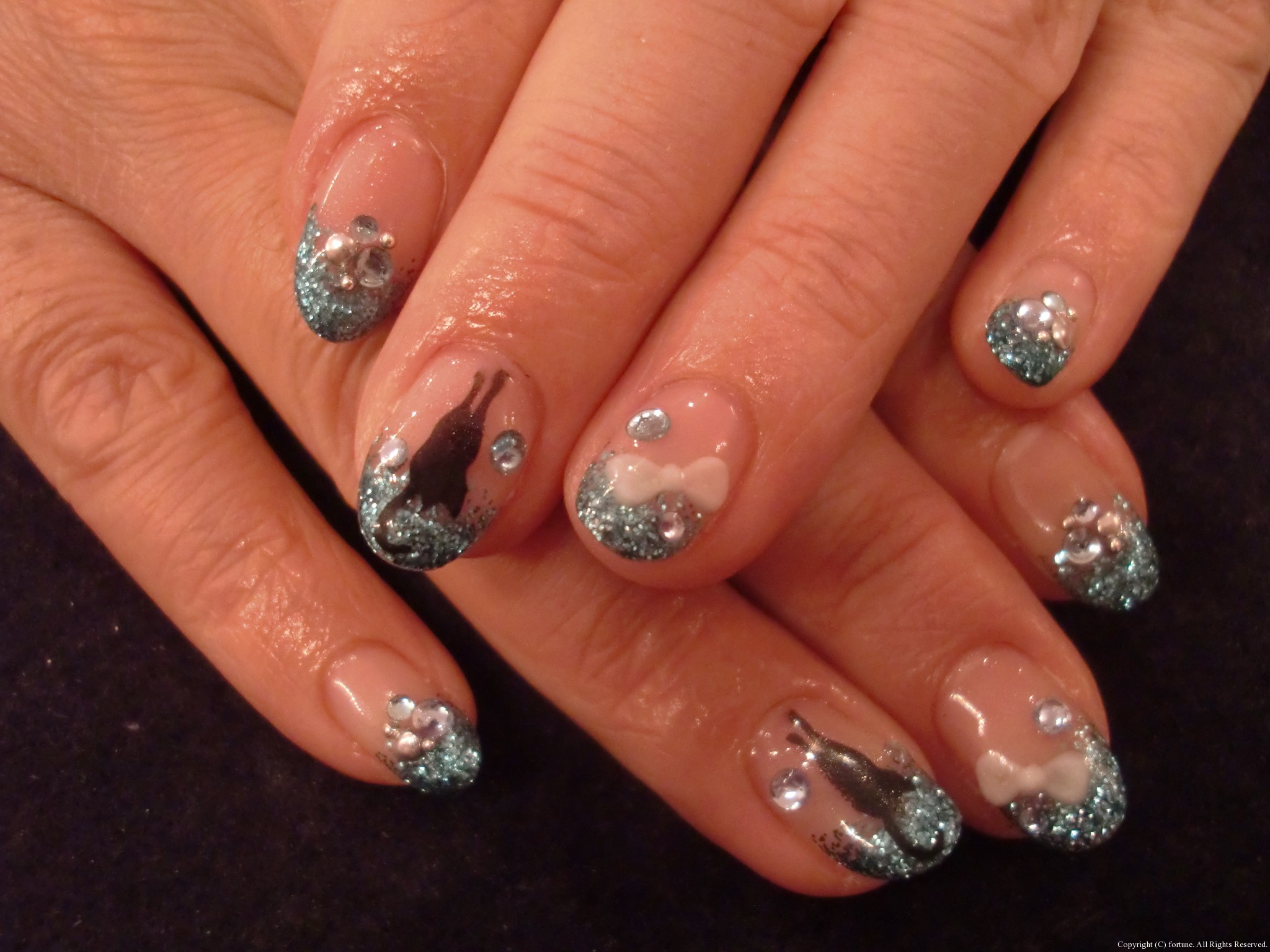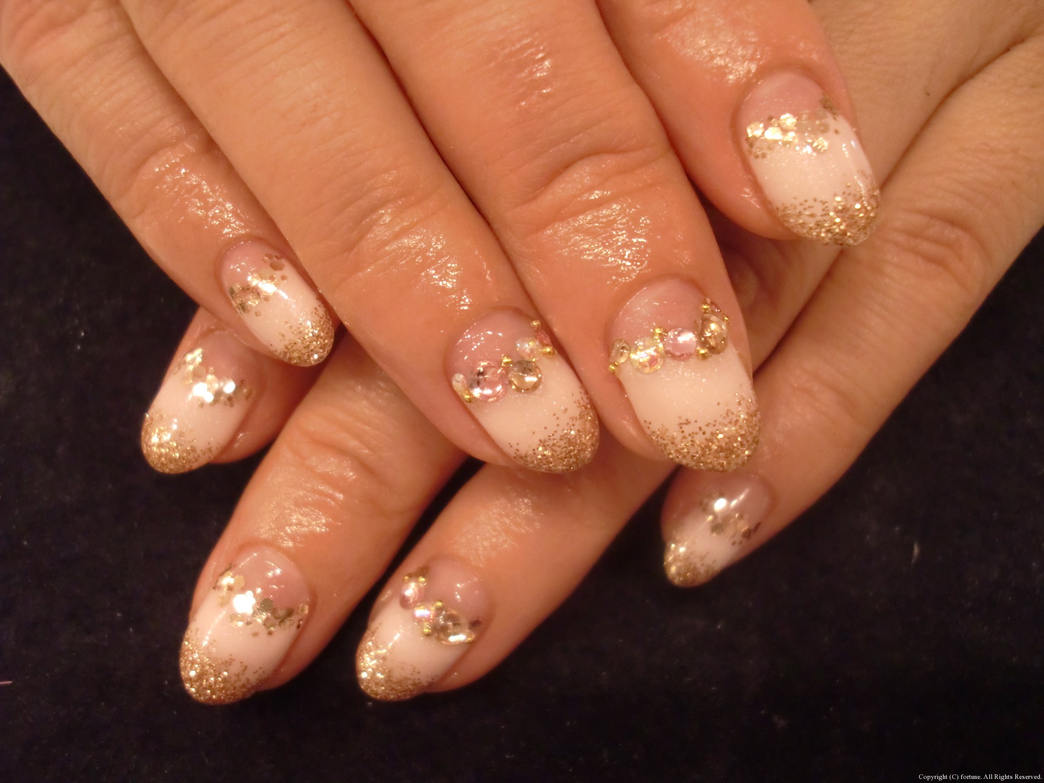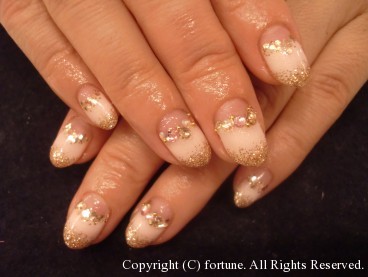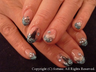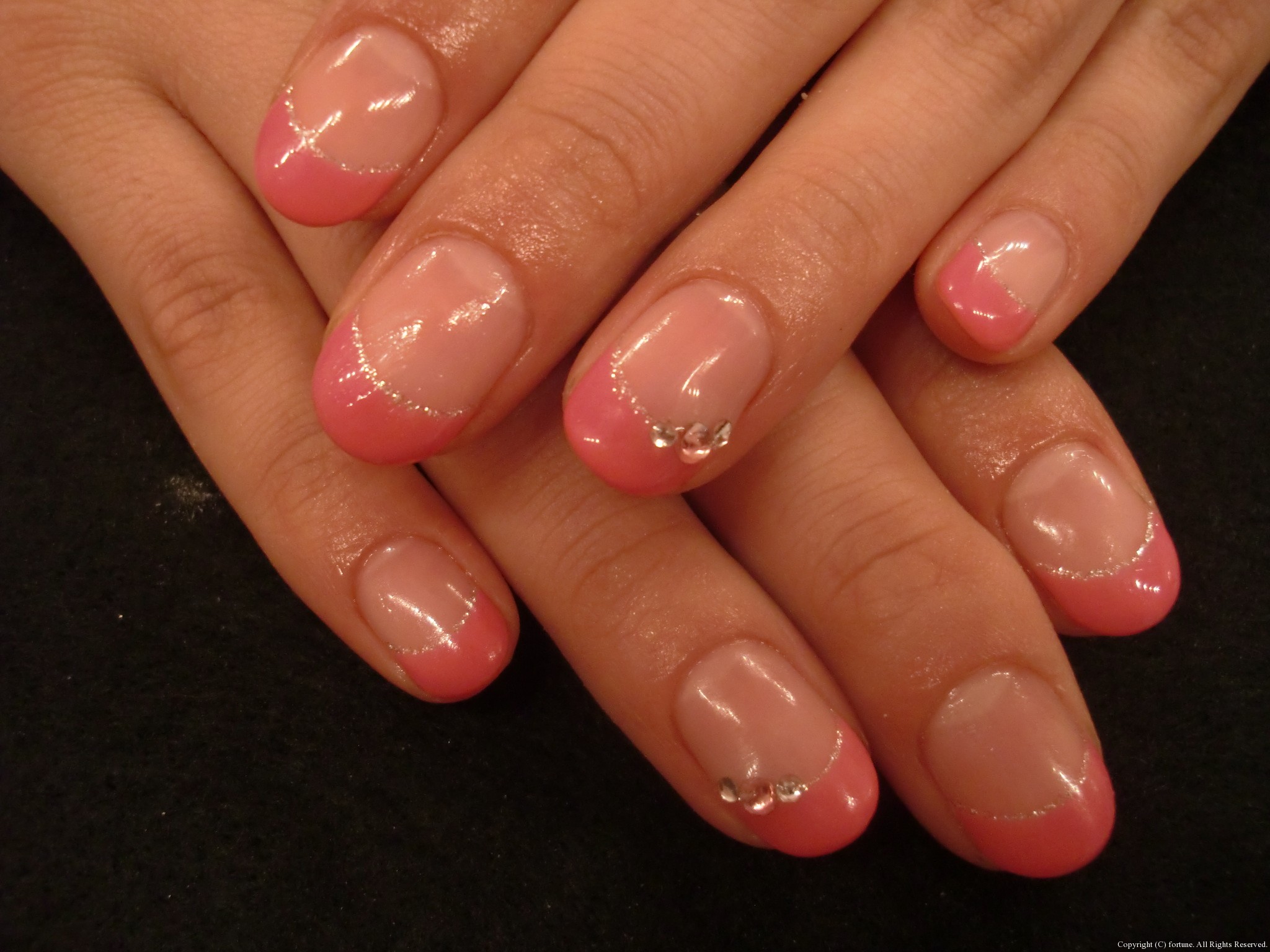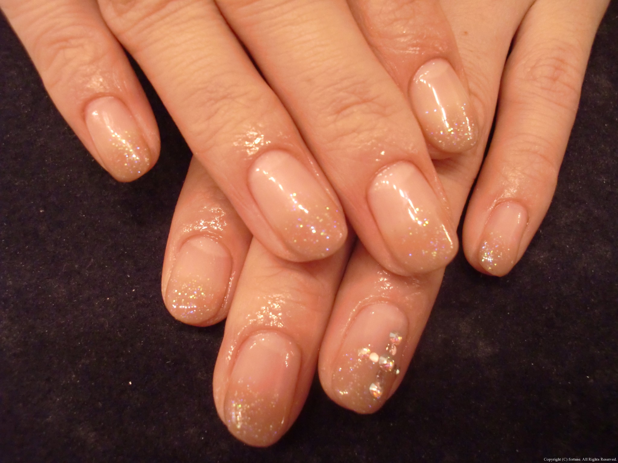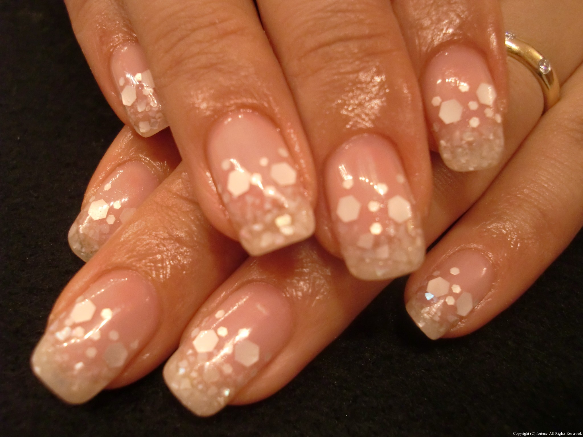 ホワイトフレンチに先端と境目に純銀ラメでキラキラに☆スクエアストーンが