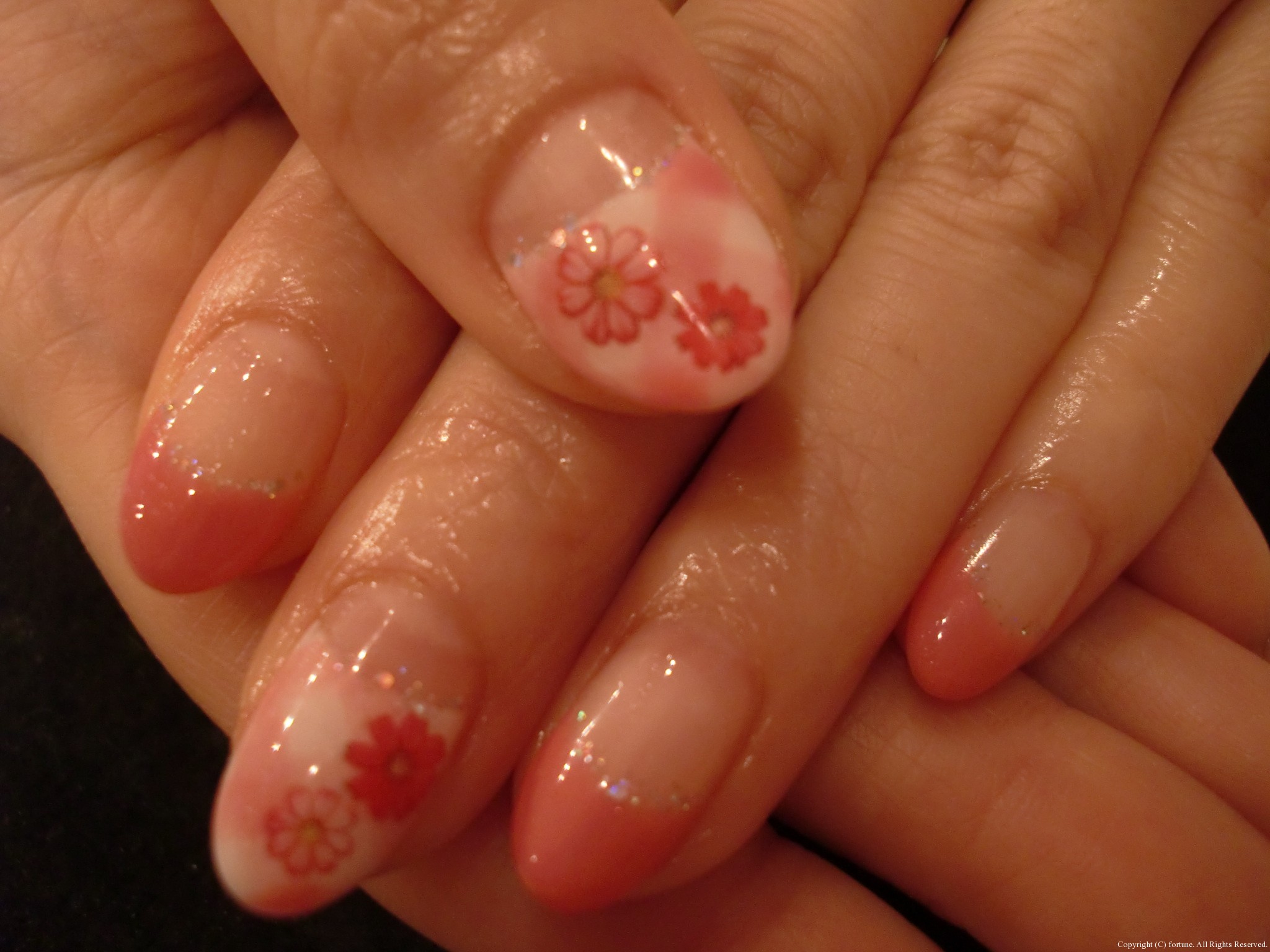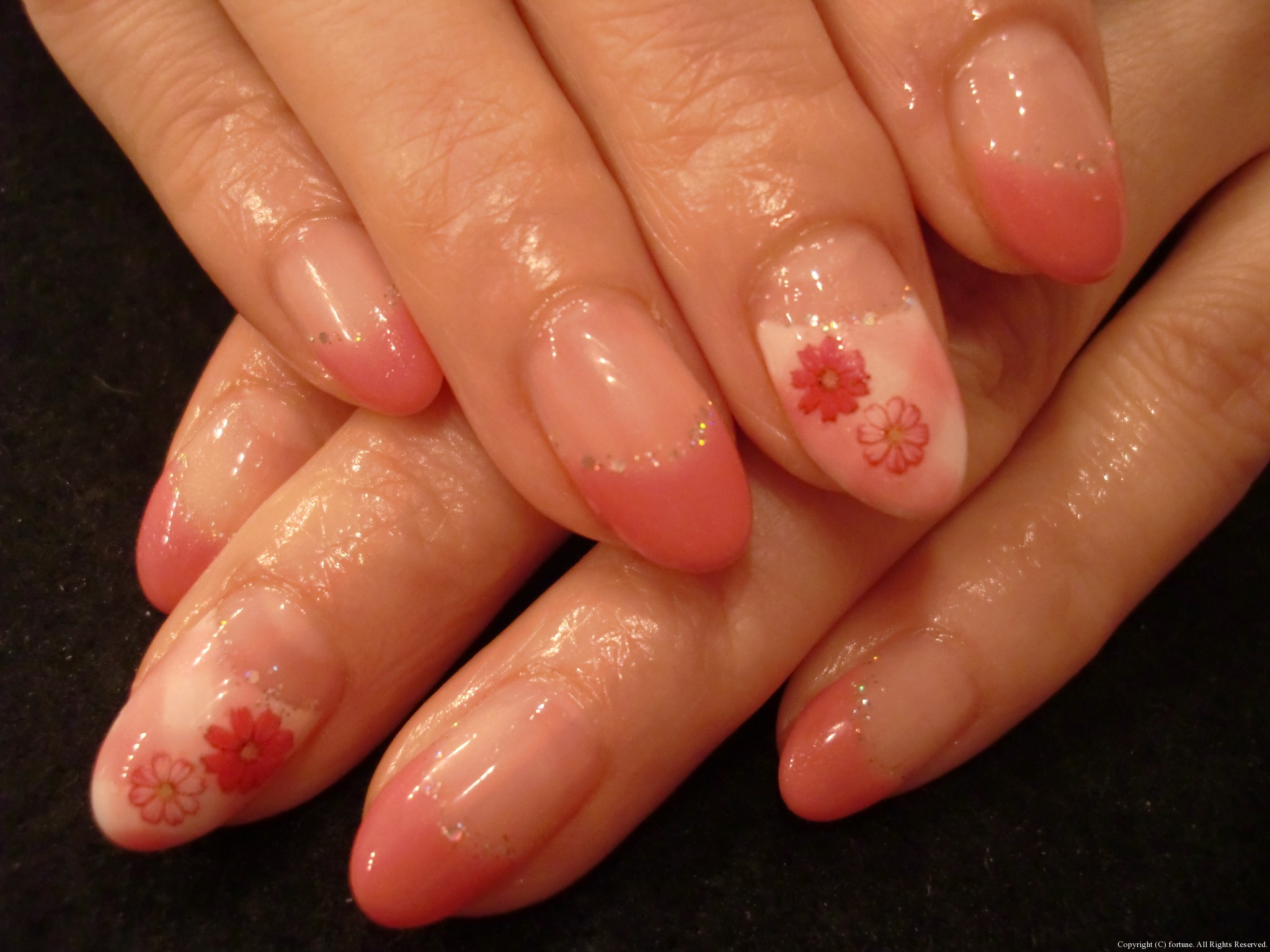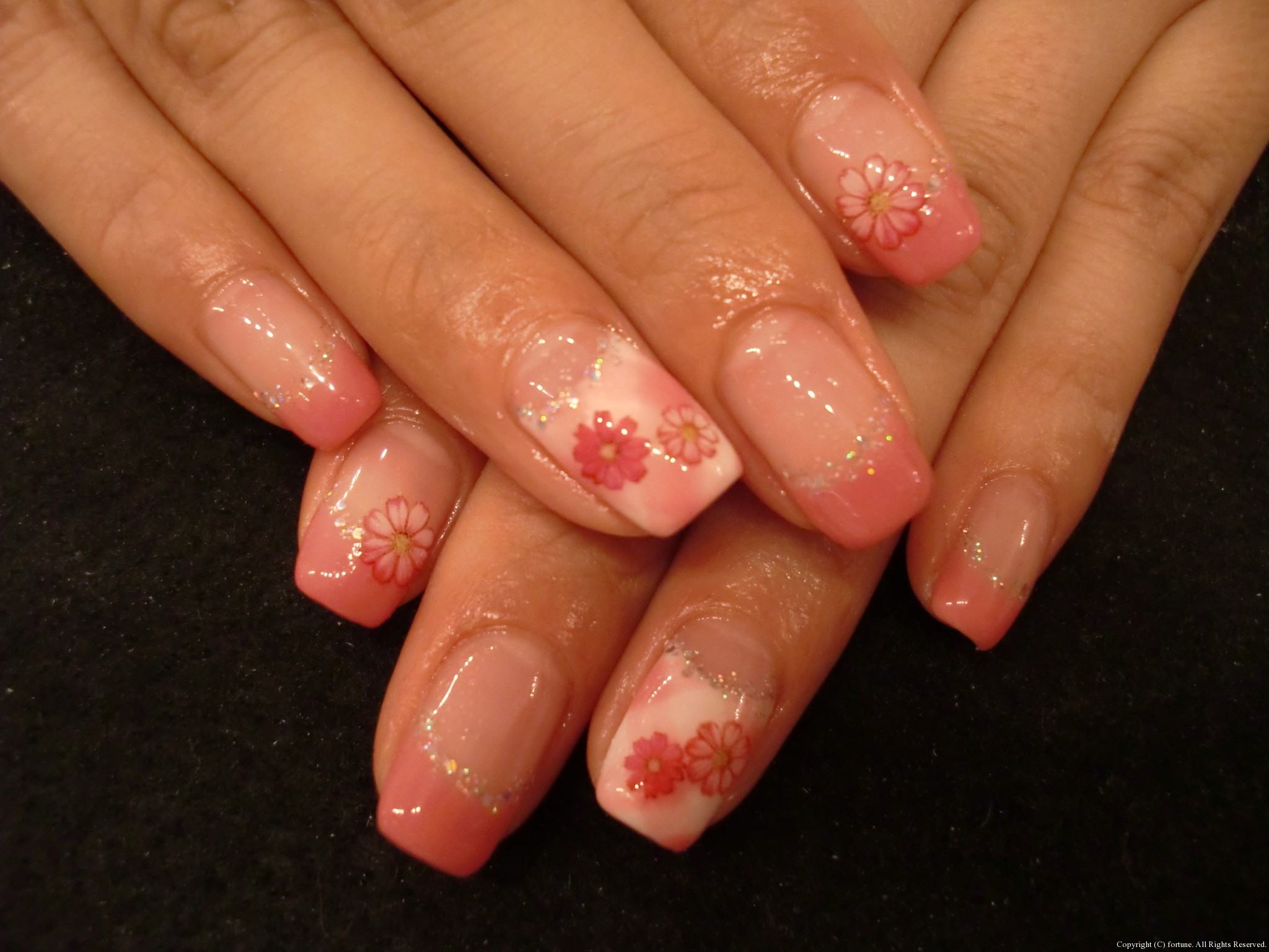 ↓逆フレンチにパステルカラーのお花♡カワイイ♪