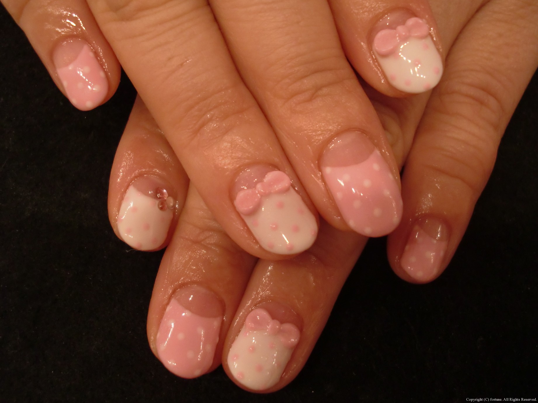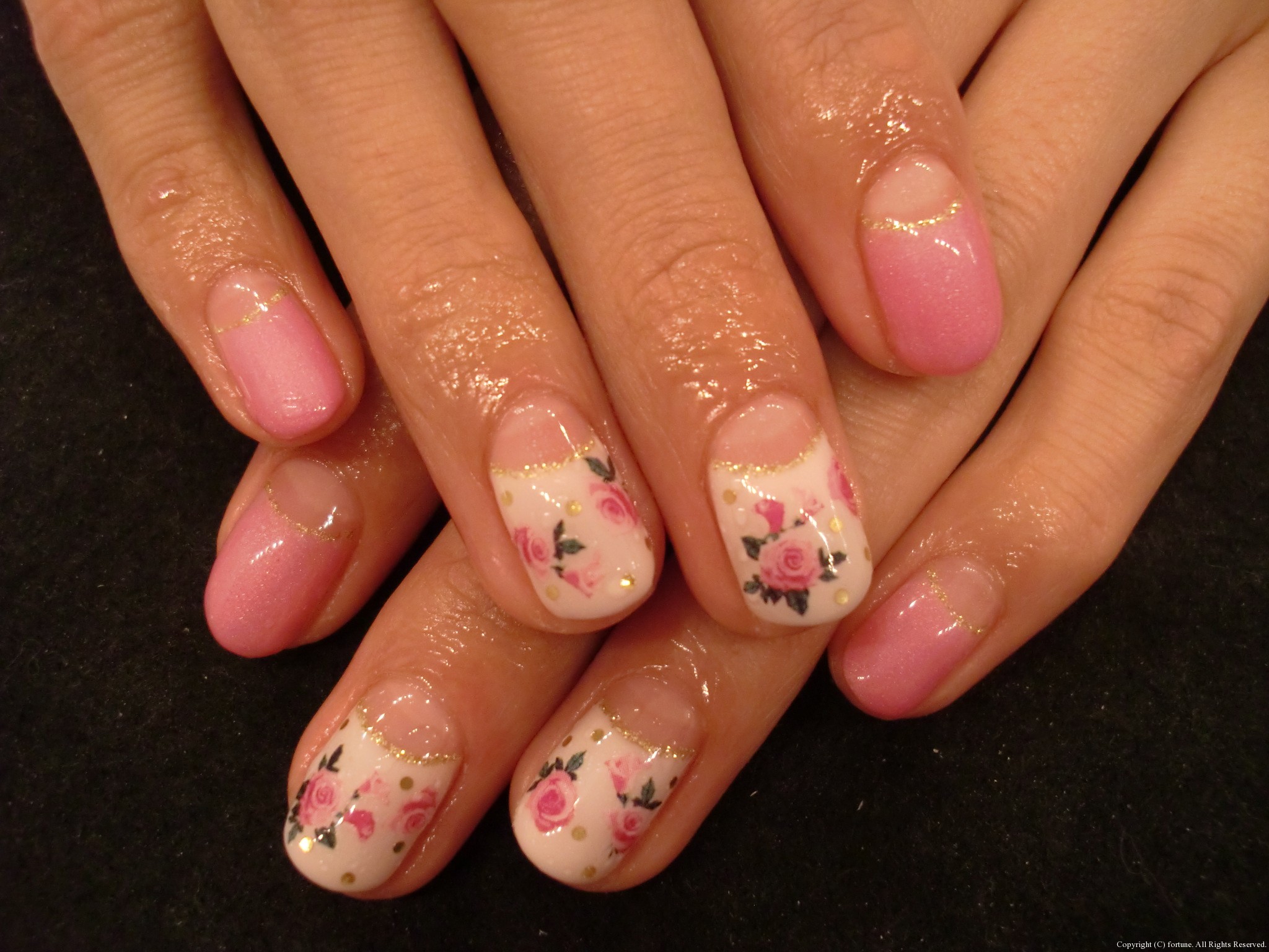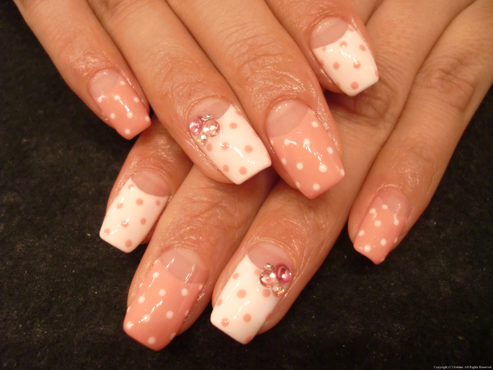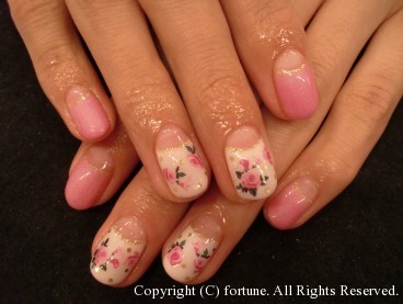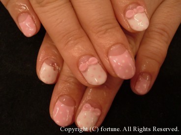 ハンドもフットも♡ 昨日からGWですね★fortuneは本日と2日は営業です! GW前にネイルをきれいにされる方が多いです! キキララ風のかわいいデザイン☆ 親指をピーコックにして3Dのバラをつけました♪ ハンドはピンクが人気です♡ 白×ピンクの逆フレンチドットに3Dリボンをつけました! 白×サーモンピンクにストーン♥ 白×濃いピンクの逆フレンチにバラをつけて上品に★ どのネイルも素敵です! AIKO