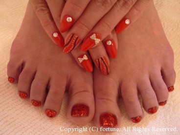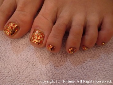 フット♡ 4月に入ってからハンドとフットを同時でやって行かれる方が増えました☆ カラー1色にシェルを全面にのせて♡ シェル独特のキラキラ感がとってもかわいいです!!! オレンジも今年流行色でかわいい!! 是非皆さんもお試しあれ♪ AYA