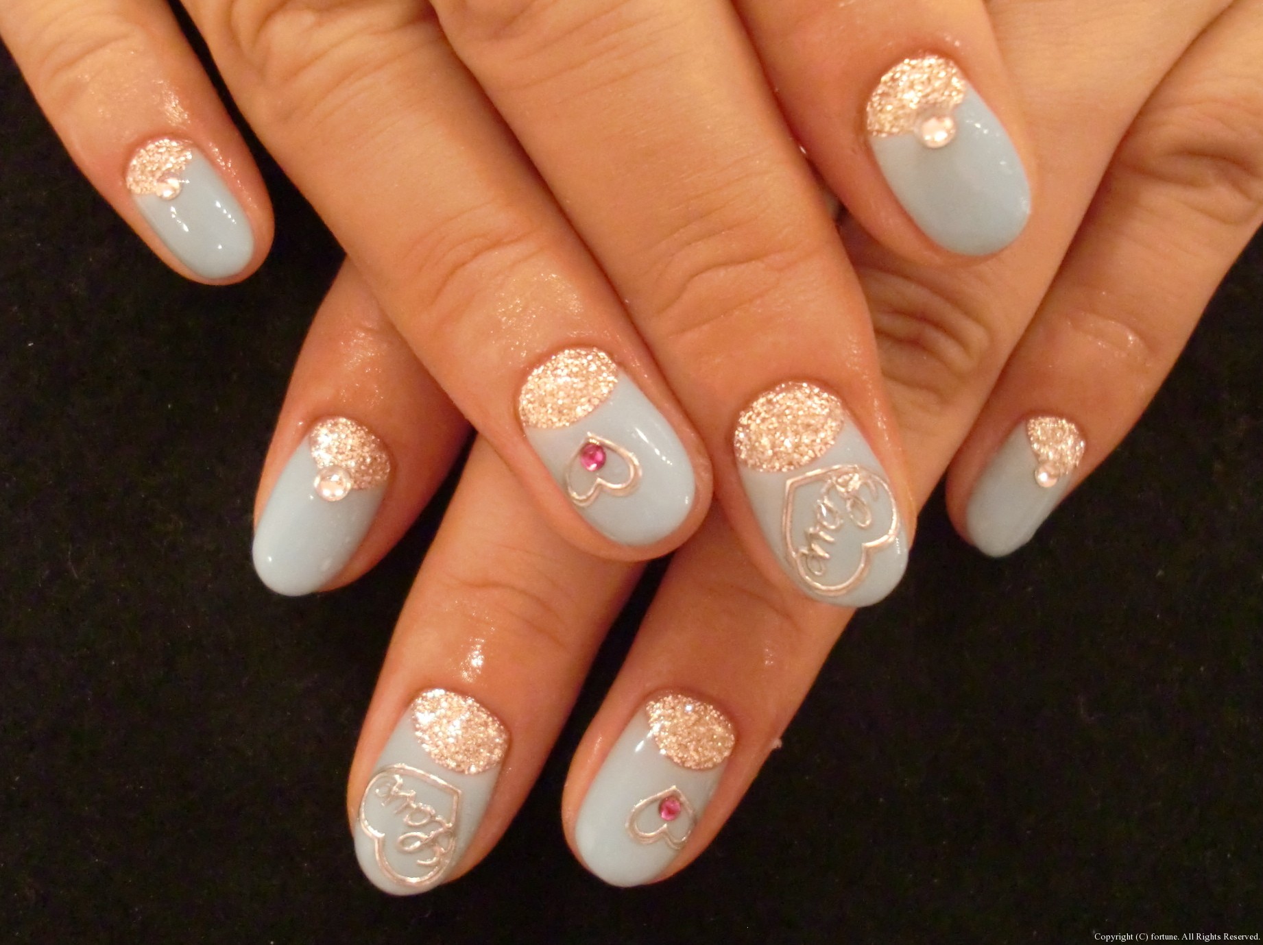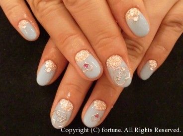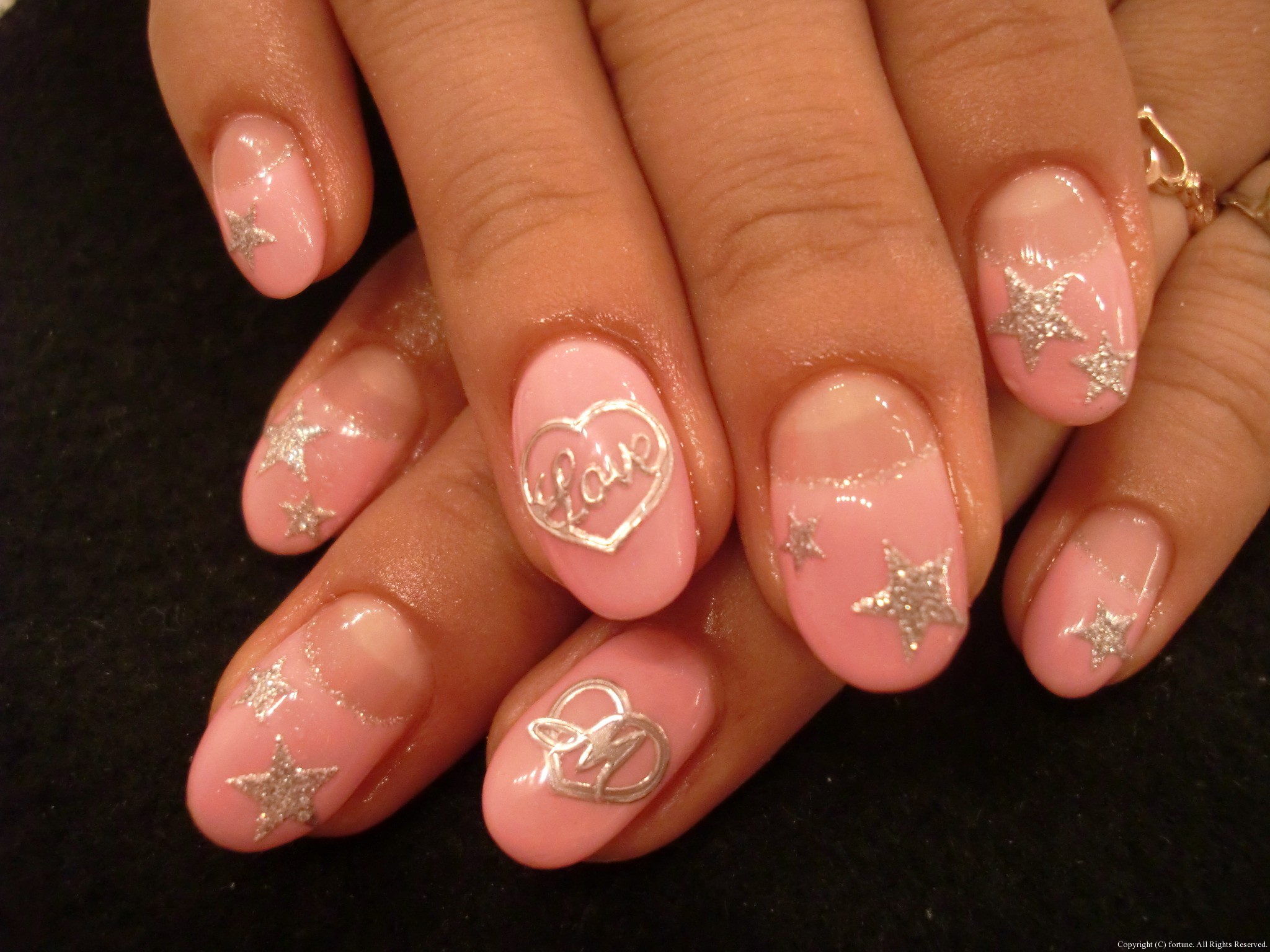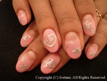 お客様ネイルはベビーピンクに☆と♡でラブリーですね♡