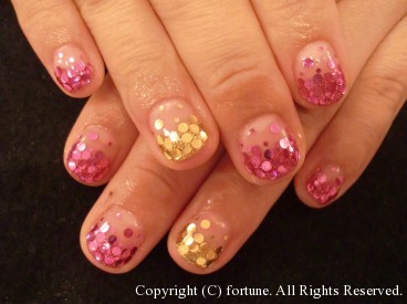 写真では分かりにくくなってしまいましたが、パールラメグラデにカーニバル色のホログラムとラメ&ストーンでキラキラ☆に!