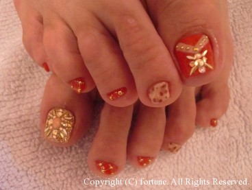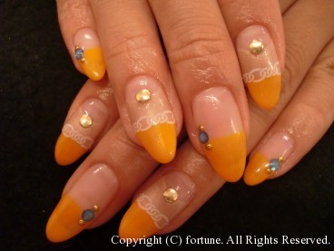 オレンジ&ベージュにチェーンアートと差し色のブルーストーンで元気に!