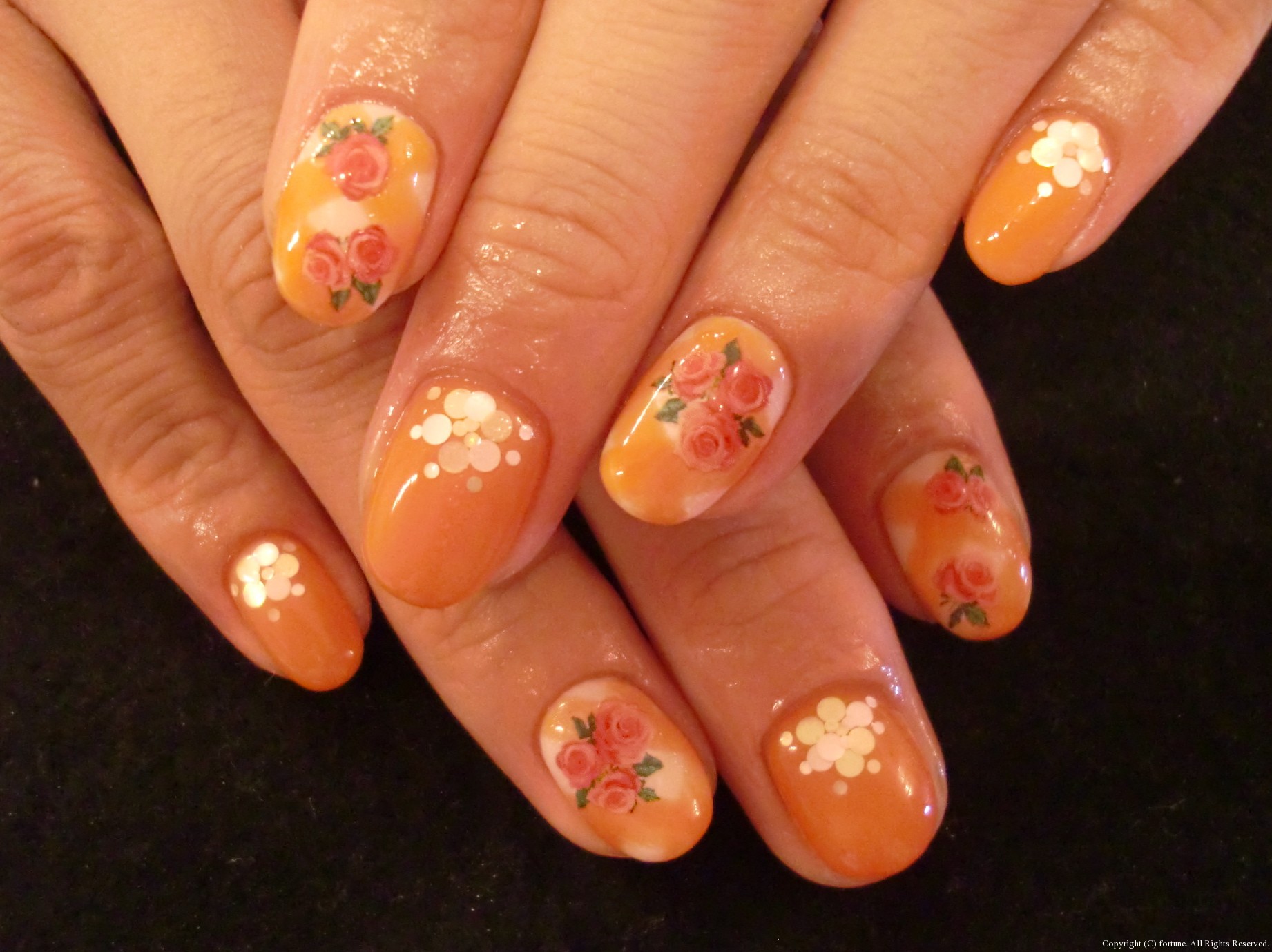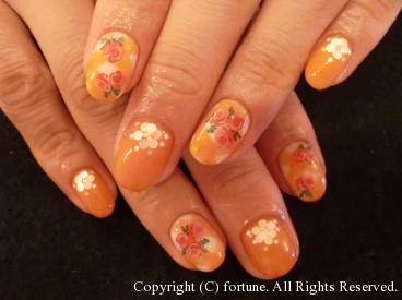 ↓オレンジカラーでチェック柄やバラアートで可愛く♡