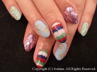 2段ラメラインを引いて、ストーンを10本にのせました☆