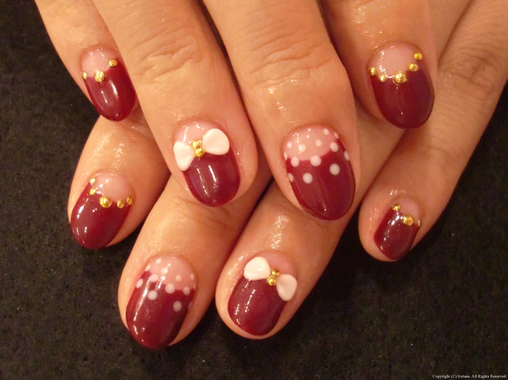こちらは秋らしいボルドーカラーに、3Dリボンがかわいいデザインです♥