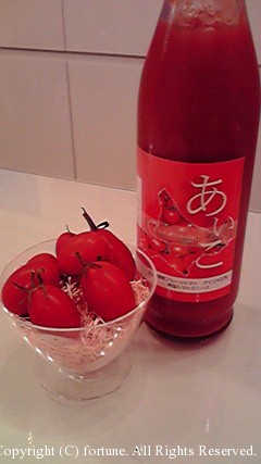 ☆あいこ☆ 先日JUNさんが買ってきてくれた“あいこ”♡ あいことは…私と同じ名前の品種のトマトのことです!! 細長いのが特徴です♪プチトマトを長くした感じです! 味は酸味が少なく甘くて、フルーツ感覚ですね〜♪美味しい♡ こちらはあいこのトマトジュース★正直普通のトマトジュースは そんなに好きでは無い私…。ですが!これは本当に美味しかったですよ〜!! トマトそのものと同じで、酸味が少なく甘くて飲みやすい♪ 代官山の『Celeb de TOMATO』というお店に売っているみたいなので ご興味のある方は是非行って見て下さいね。 AIKO