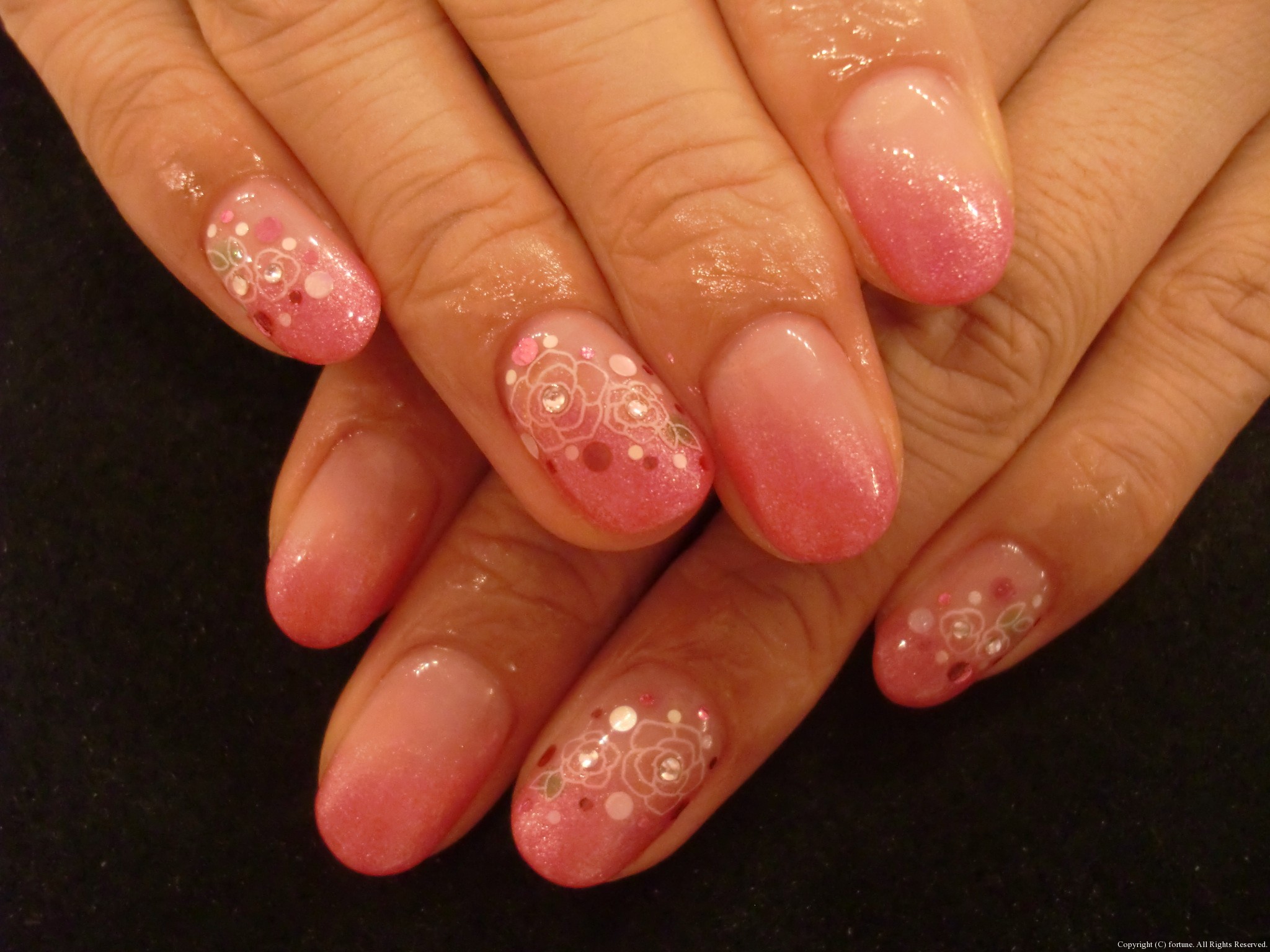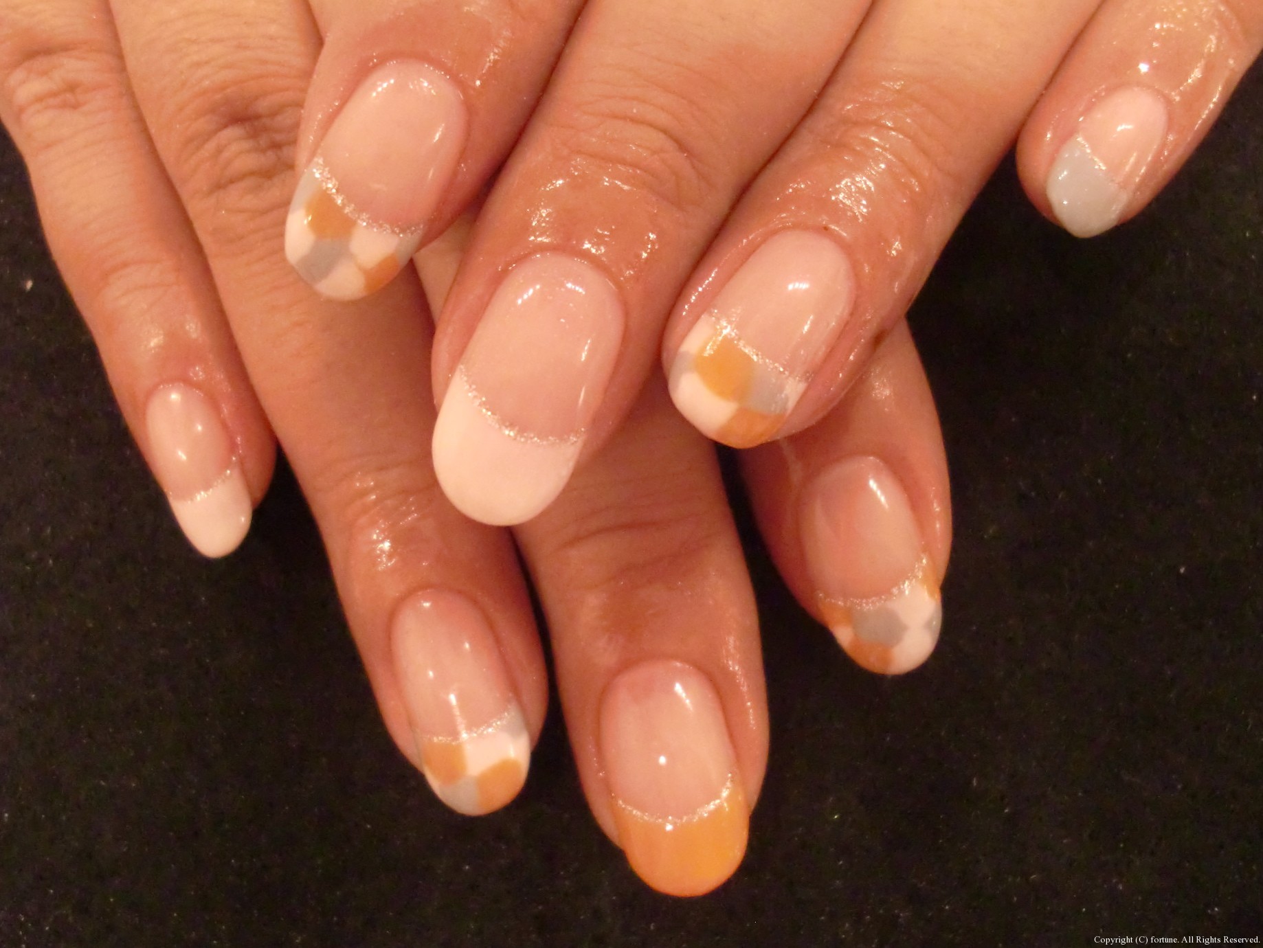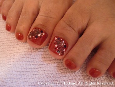 デザイン色々♪ オレンジ×白×グレーの大人の組み合わせ♪フレンチ♪ ななめグラデーションにバラのシールとホログラム♡ フットもお揃いで、バラは黒のバージョン♡ フットジェル=夏、なイメージかもしれませんが、秋冬もフットジェルをされている方が最近は多いですね! パンプスで痛くならないよう、ギリギリまで短く、ストーンなどで分厚くならない、シールやホログラムのアートがオススメです♡ 可愛いネイルで素敵な毎日を♪ NAOKO