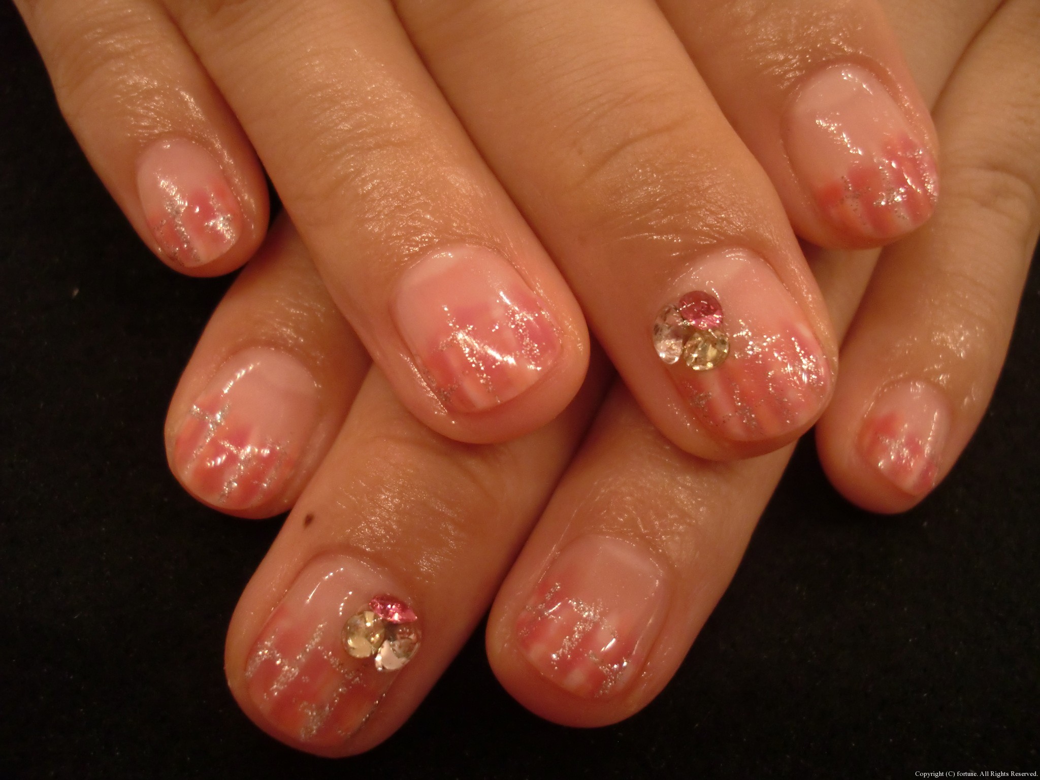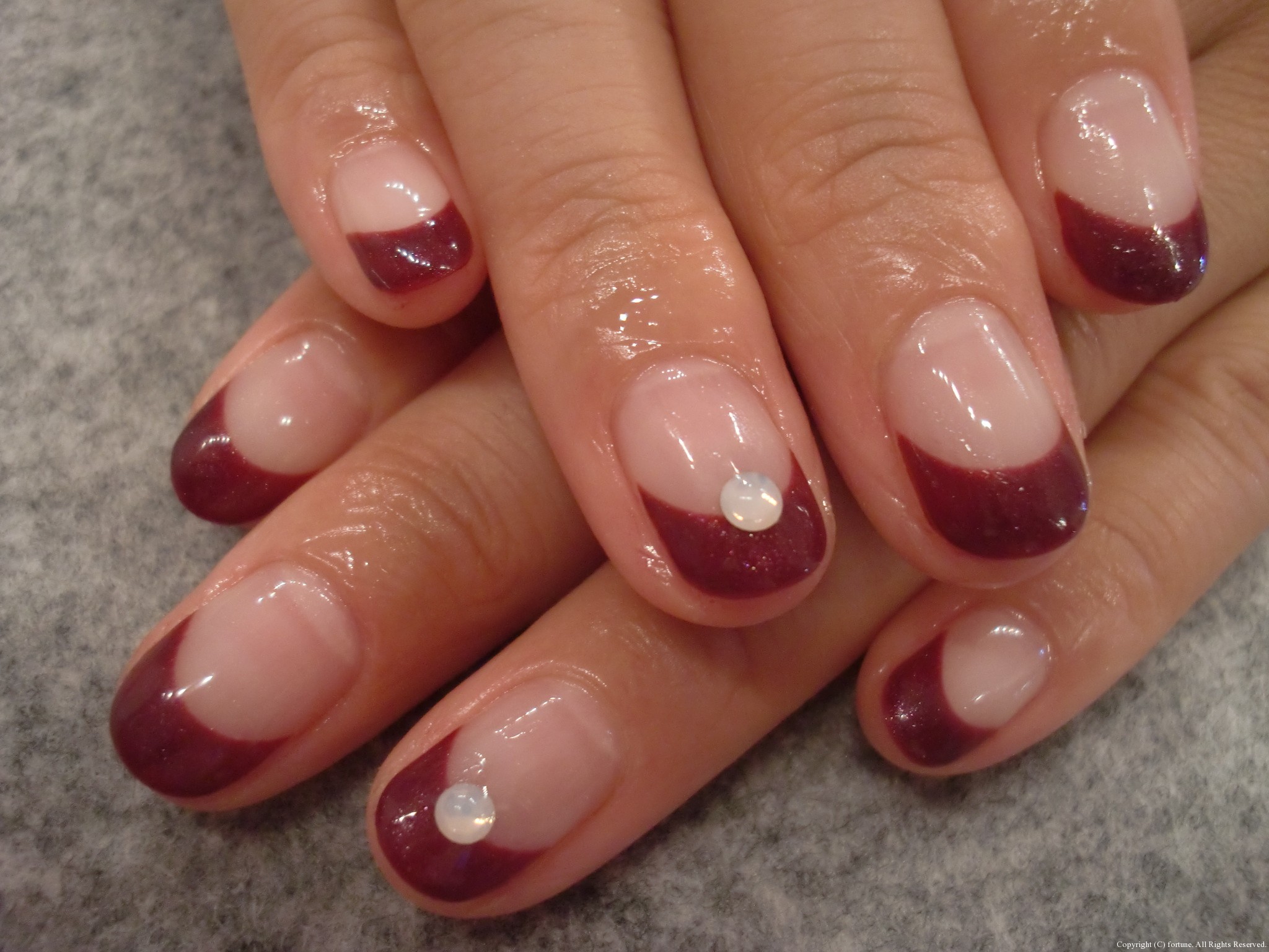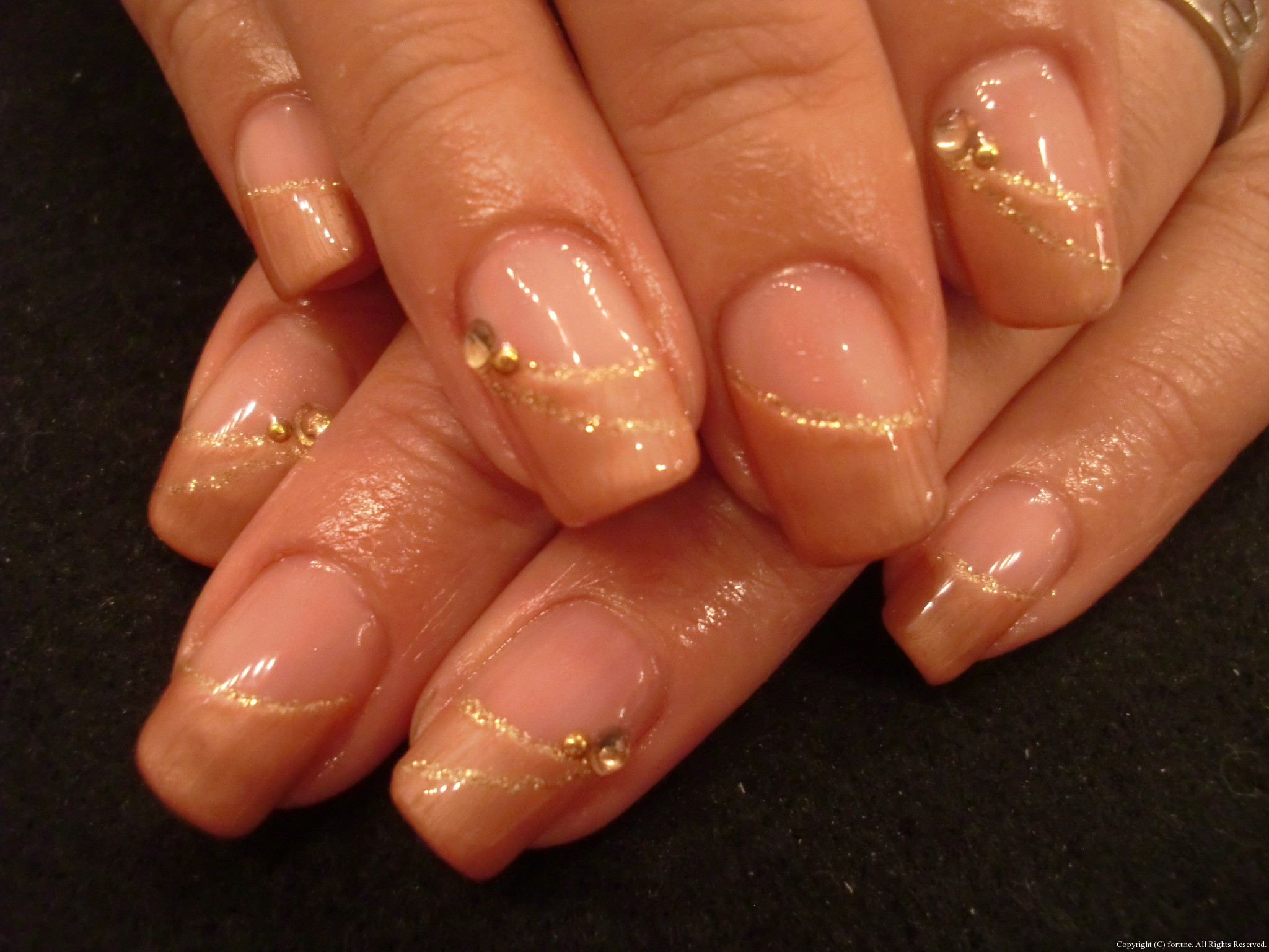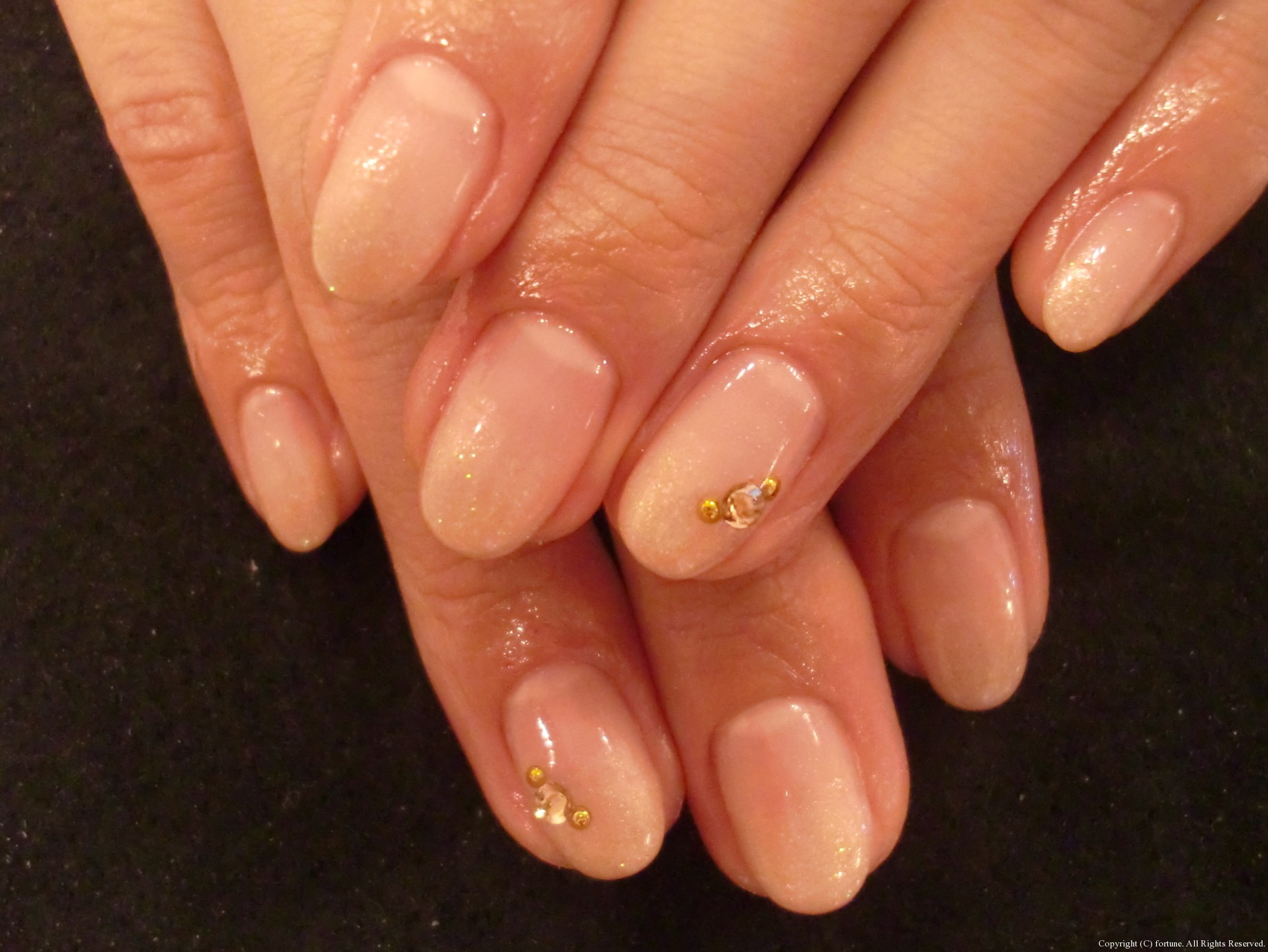シンプルデザイン♪ シンプルなベージュグラデ♪ 斜めフレンチマーブル♪ 私のネイルは、珍しく1色塗り♪ シンプルなデザインでも、少しストーンが入ると違いますね♡ 可愛いネイルで素敵な毎日を♪ NAOKO