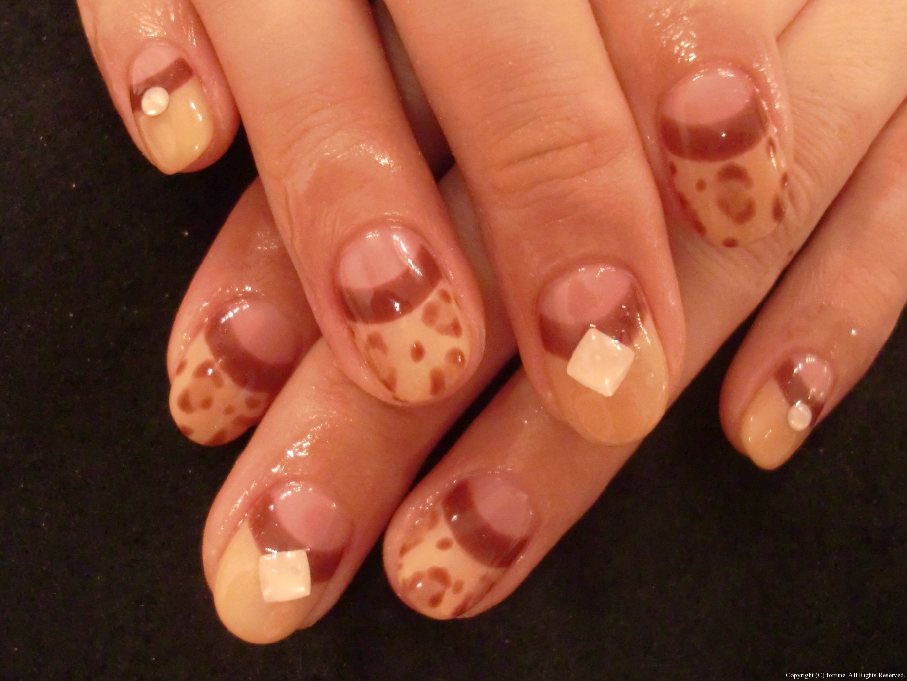 秋ネイル♪ 秋服に合うブラウン系ヒョウ柄♡ こちらはナチュラルに、ベージュ系ヒョウ柄♡ ピンクベージュ系チェック柄♡ 秋らしいお色で、ポイントにストーンを♡ どれもとーっても可愛いです♪ 沢山サンプルをご用意して、お待ちしております♡ NAOKO