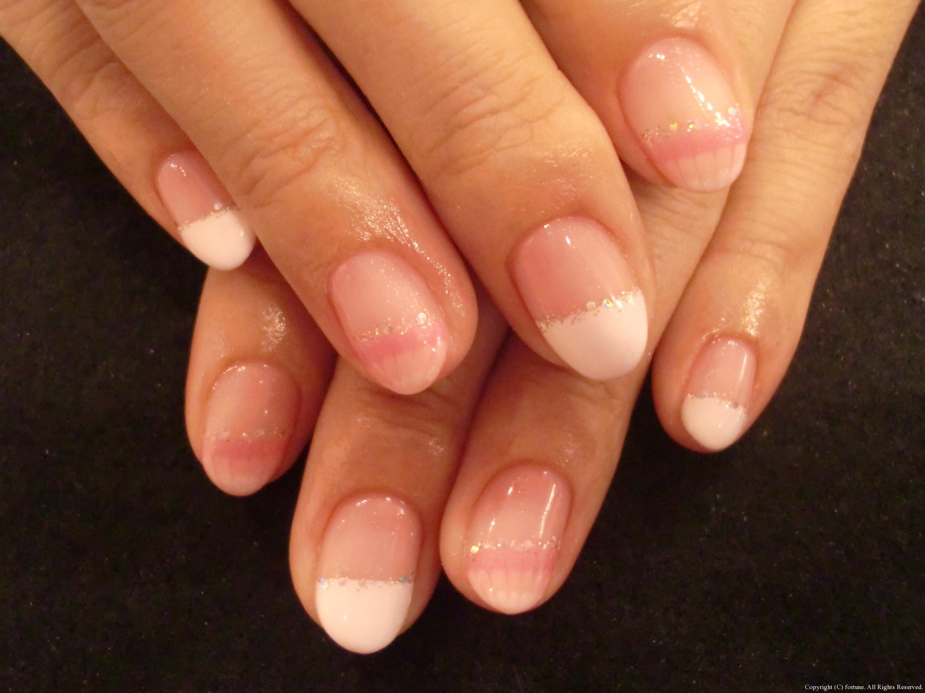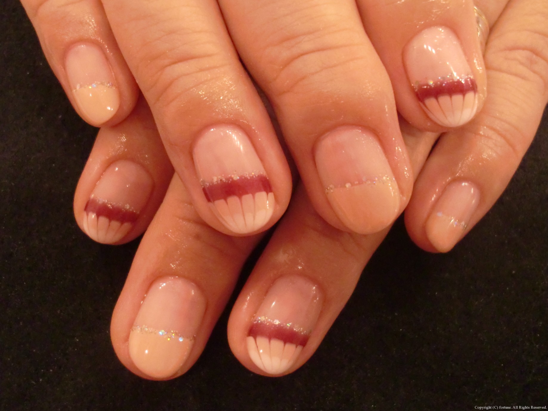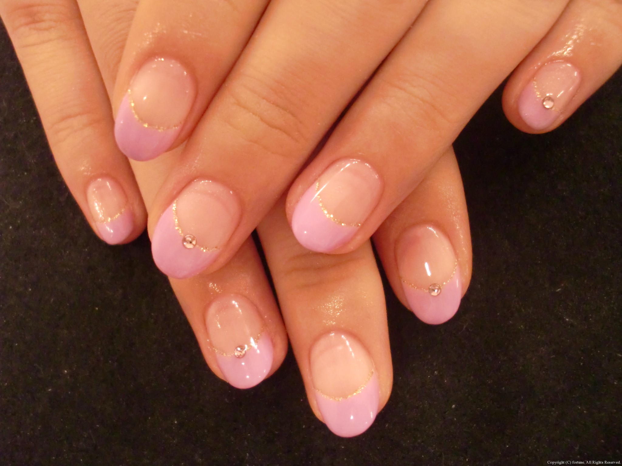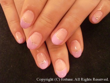 パープルフレンチにラメラインとストーンでシンプルに可愛く♡