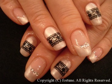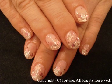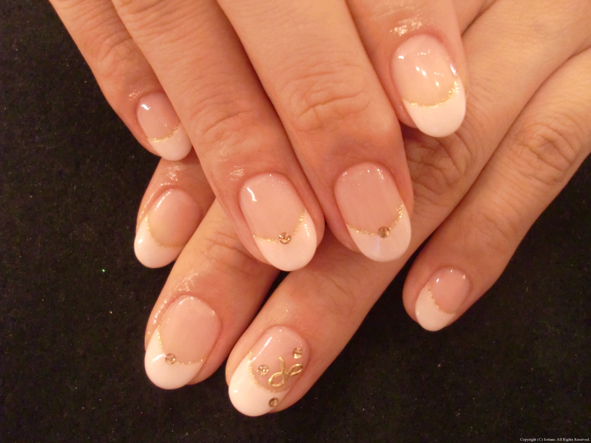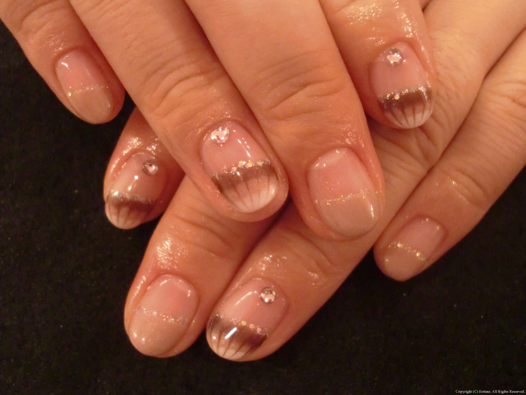 パープルフレンチにラメラインとストーンでシンプルに可愛く♡