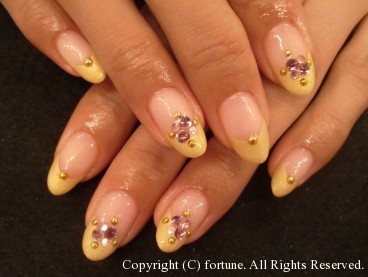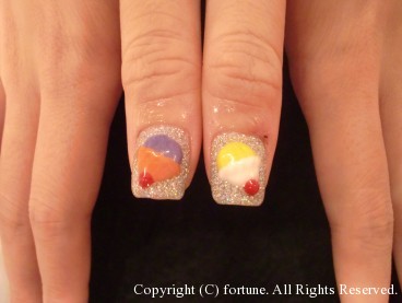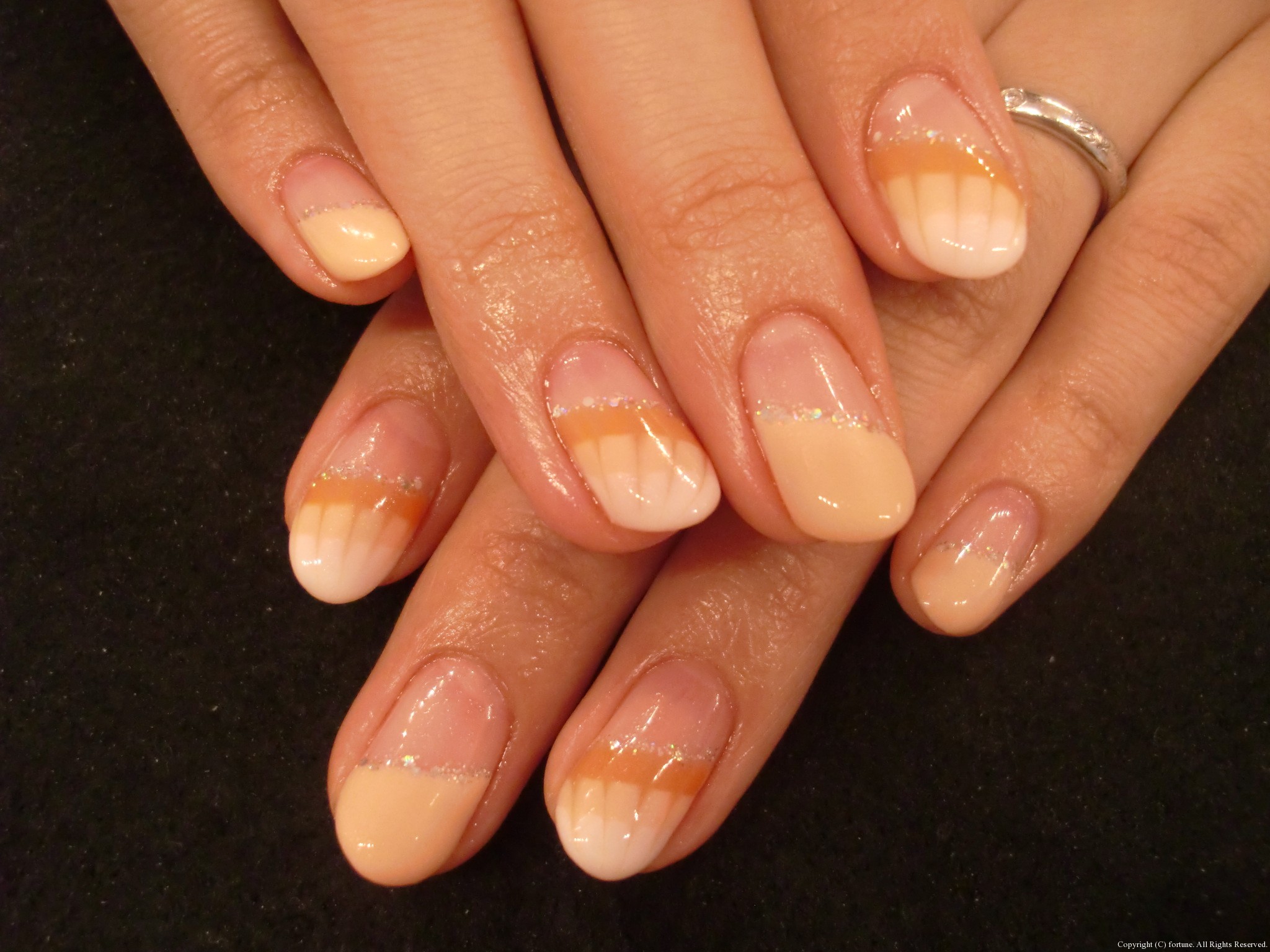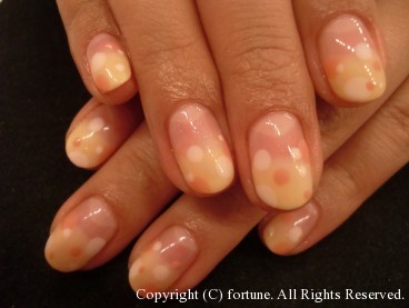 イエローベースにオレンジ&ホワイトで明るい指先に!元気が出ますね!