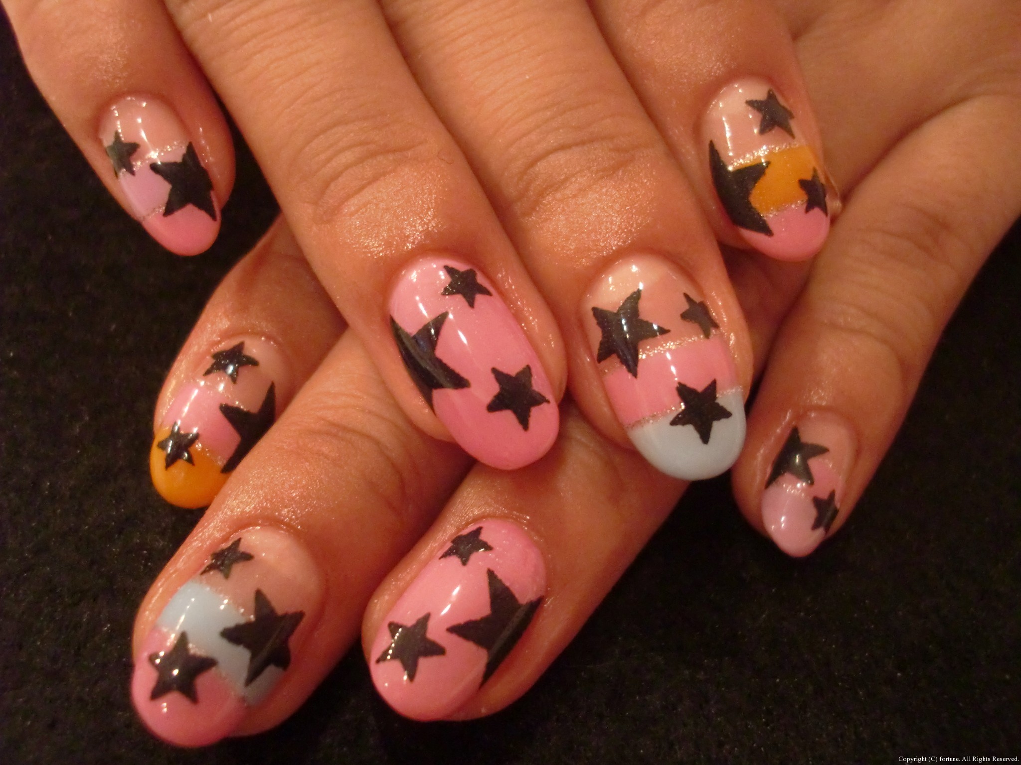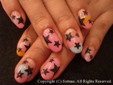 お客様ネイルはカラフルカラーに★がいっぱいのポップな指先です♡