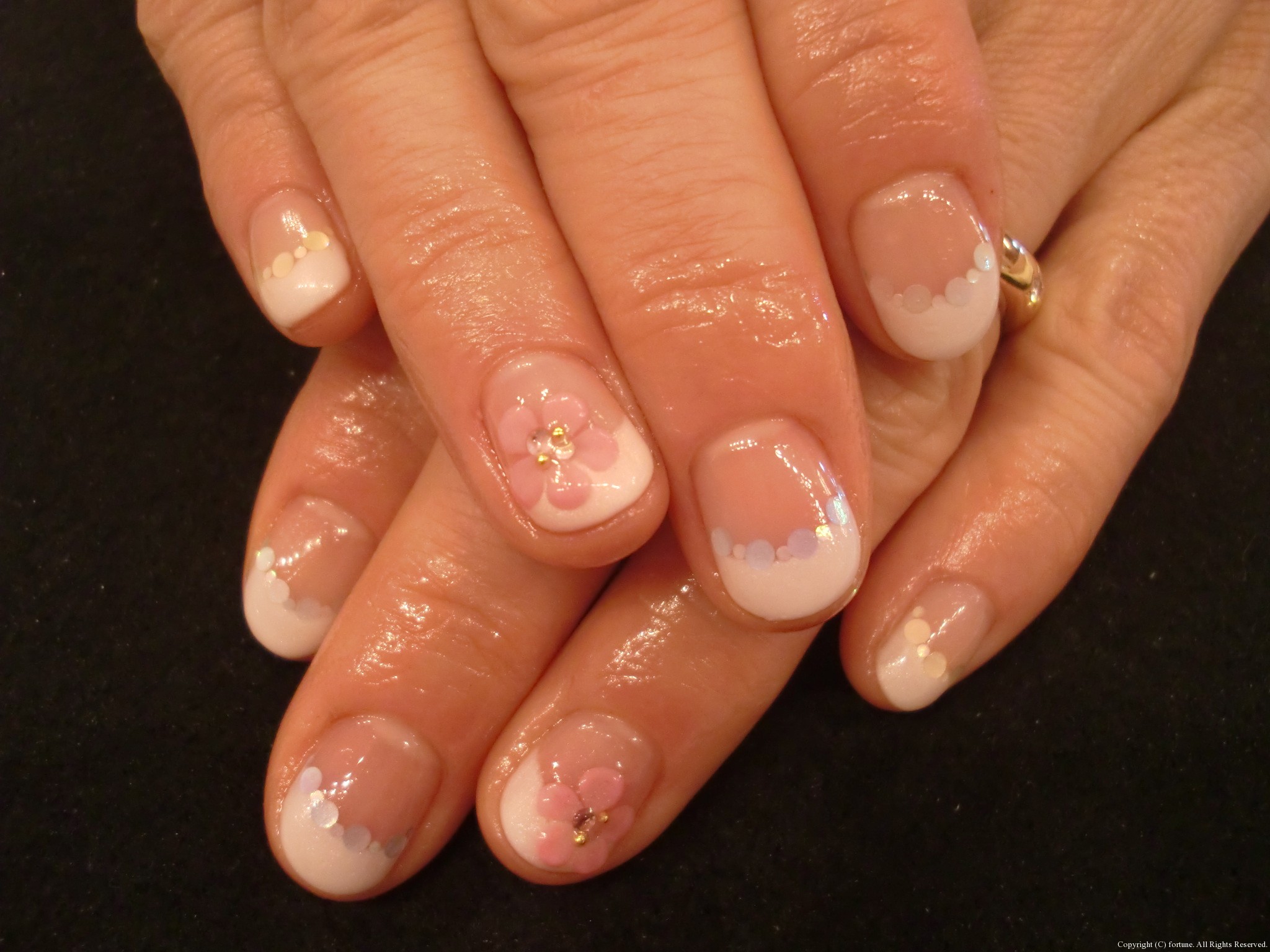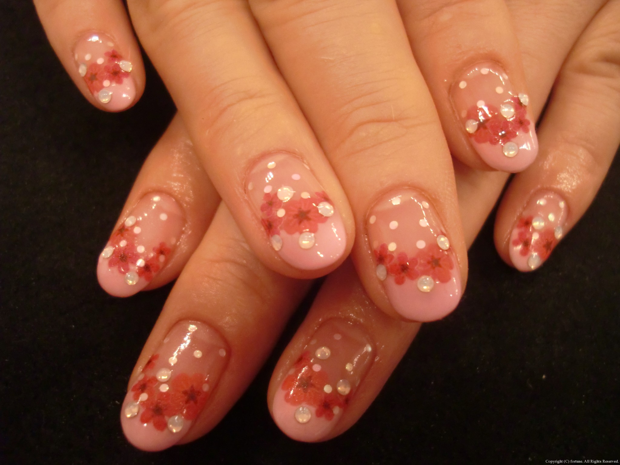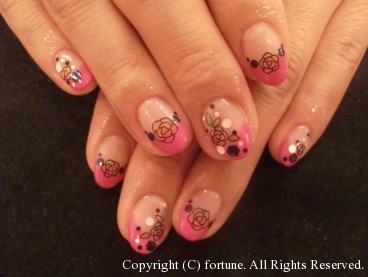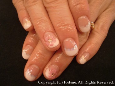 ピンクフレンチに赤のお花が満開です♡この季節にぴったりですね!!