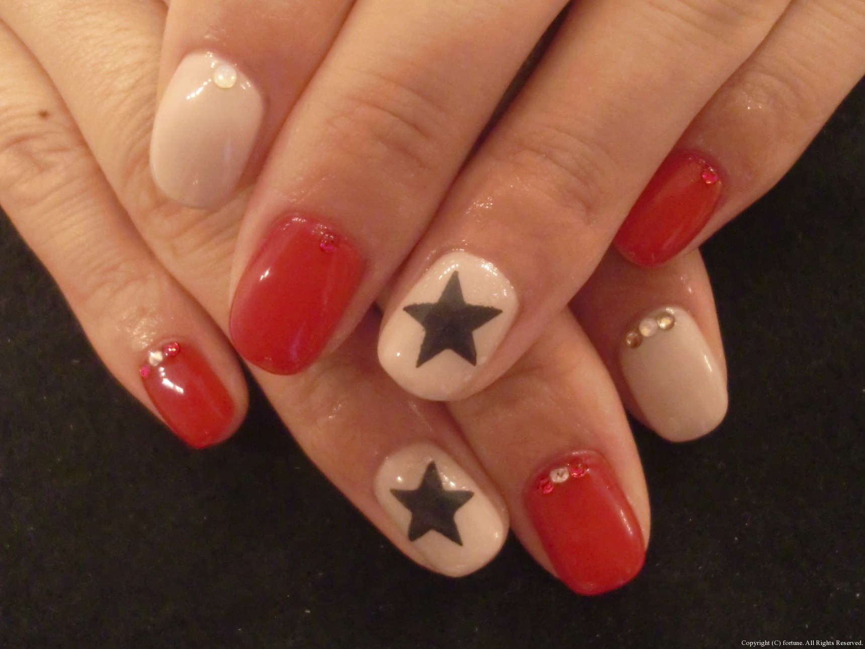 こちらも人気のデザイン★赤×グレーベージュ×ゴールドが可愛いです♪