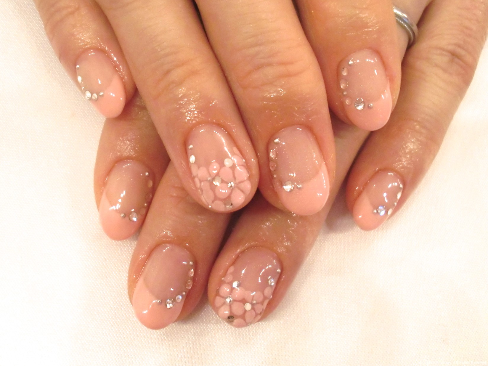 ななめグラデにホログラムのお花とストーン♥春はお花が人気ですね♪