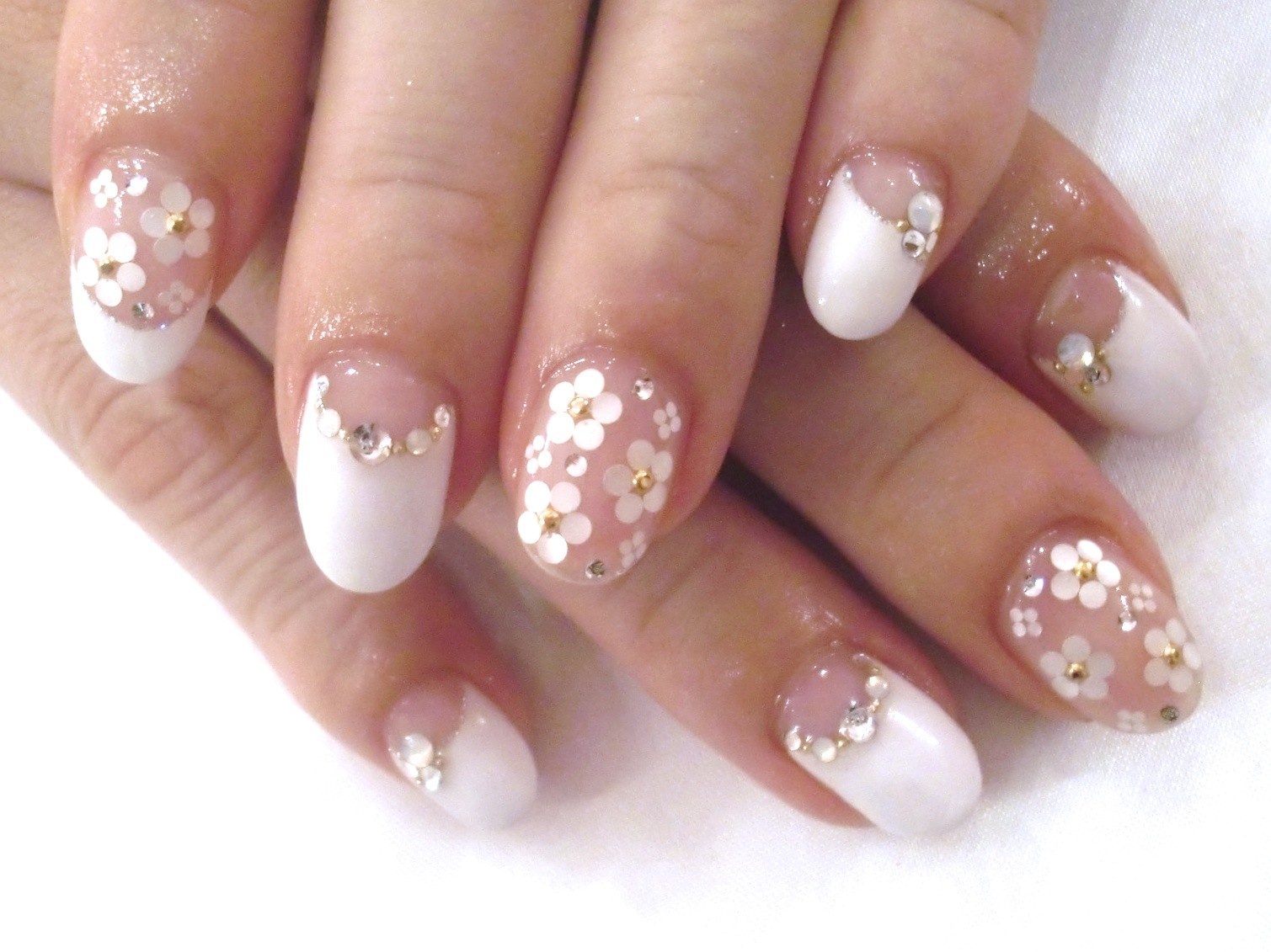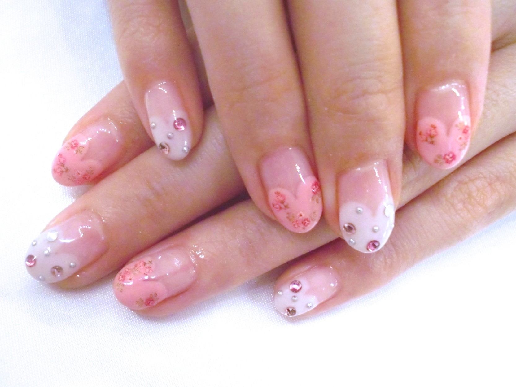チョコカラー♡ スカイツリーの特別ライティングの1つ『ブラウンショコラ♡』 ほとんどブラウンに見えなかったですが。。。笑 全部で3種類あるそうで、イベントでカラーがたくさんあると見るのも楽しいですね♬ お客様ネイルです! ハートフレンチに小花柄♡ シンプルにビジューで上品に♥ 人気のアートをお客様アレンジ♬ AKIKO