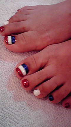 ★★FOOT★★ 来週から6月突入です!! 皆様FOOTのお手入れは大丈夫でしょうか!? ネイビーと赤のラメと、ホワイトを使って親指以外を塗り分け、 親指は3色ボーダーにしましたよ♪ 遠目からでも目立ってとてもかわいかったです♡ AIKO ★☆★5月から毎月お得なメニューを1つだけサービス価格でご提供★☆★ 今月は★カルジェルフットケアラメ1色限定¥8400→¥7350★