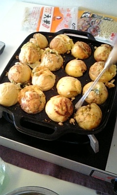 たこ焼き 意外と家庭でたこ焼きは難しいもので… 3回目にして、鉄板にようやく油もなじみ大成功♪ 変わりたこ焼きにもチャレンジ! チーズにスイートコーンを入れたらめっちゃ旨でした〜♪ 次回はお餅も入れちゃお〜 JUN