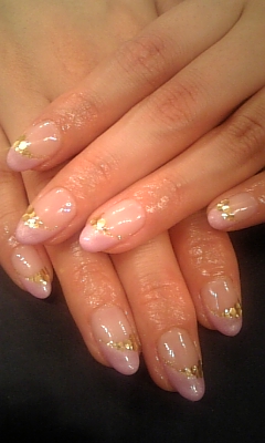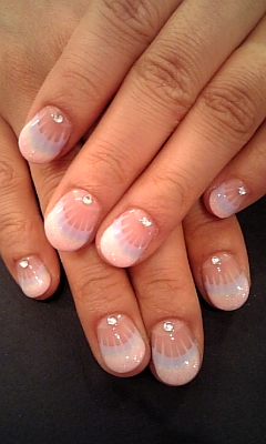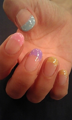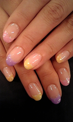 ピンク&パープル&パステルブルー&ラメでピーコックフレンチも