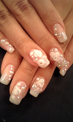 ブライダルネイル♪ 今日海外挙式のお客様のブライダルネイルです♪キャーッ♪ アートはやはり純白のバラ3Dとストーンで☆☆☆ いつもブライダルのお客様が来て下さるのは嬉しいものです♪ 素敵な結婚式なんだろうな〜…と妄想が膨らみます。 おめでとうございます。末永くお幸せに♡ドレス写真是非見せて下さいね♪ JUN