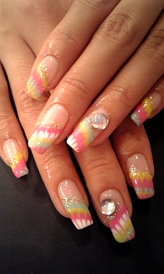 ピーコック 今日は派手カワいいピーコック柄で〜す♪ 微妙に色展開のあるピーコック柄★ピンク+イエロー+グリーン+ホワイト に大きめのぷるんとしたストーンをのせて夏らしいですね♪ 私もピーコックにしたくなってきました☆ JUN