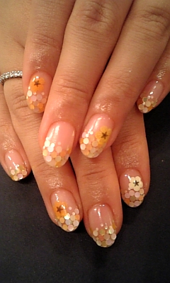 パステルホログラム☆ 最近はパステルホログラムのグラデーションが人気です! 華やかさが出てとっても可愛らしいですね〜 こちらはオレンジ系のホログラムで押花をあしらいました♪ 六角のパステルホログラムも入荷するのでアートの幅が広がりますよ〜 JUN