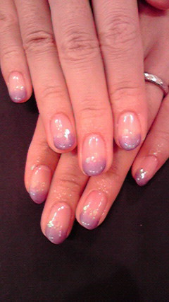 パープル人気☆ 秋も深まり、この時期の人気カラーの1つが“パープル” 薄いラベンダーで変形フレンチを作り、白のホログラムを のせました♪とても上品な仕上がりで、お客様にも喜んで いただけました!! こちらは少しパール感のあるパープルのグラデーション★ 境にはクリア感のある、オーロラのホログラムを♪ 今月のサービスメニューでもあるこのデザイン 《カラーグラデーション+ホログラム》は、ジェルのカラーも ホログラムのカラーも選べます♥ 皆様もご自分の好きな組み合わせでお楽しみ下さいね! AIKO