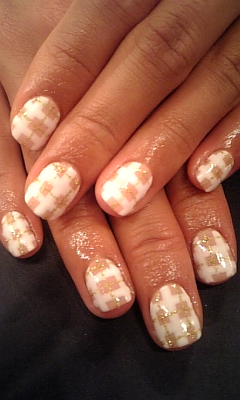 キュートネイル♡ 最近はお客様からこんなネイルにしたいと提案される事が多く なってきましたね♪お客様のネイルへの感心が高まっているのが わかって嬉しいです♪ こちらはブラックとゴールドを使ってランダムなデザイン にしてブリオンでスマイルとピースマークをのせました。 こちらは全面チェック柄でベースはベージュピンクです。 ポイントはゴールドラインですね☆ どちらもキュートで可愛く仕上がっちゃいました♡ とっても喜んでいただけて嬉しかったです♪ JUN