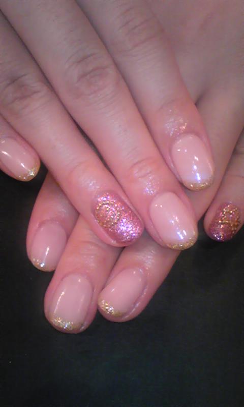 ピンクネイル♡ ヌーディなピンクベースの先端に細いゴールドラメをつけました♪ 薬指と小指にはブリオンでニコちゃんと星を♡ 女の子っぽくてとてもかわいかったですよ〜!! だんだん寒くなってきましたが皆さん風邪には気をつけましょう! AYA