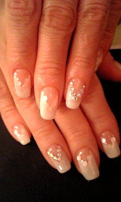 話題の映画♪ 先週の土曜日にやっと『アバダー』を観に行きました♪ 物語がしっかりしていて映像も美しくてとっても見応えがありました♪ 今日『アバター』がアカデミー賞9部門ノミネートされたというニュースがやっていました☆ まだ観ていない方はぜひ映画館で迫力のある映像を観てみて下さい! 今日ご紹介するネイルは冬にピッタリの白のVフレンチにホログラムとストーンを散らしました♡ Vフレンチは爪を縦長に見せてくれる効果があるんですよ♪ 縦長効果が欲しい方はぜひ試してみて下さい♡ YUMI