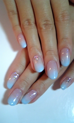 お花人気♡ お花アート大人気ですねっ! ラメグラデーションに♡ホログラムでお花を作りました♪ こちらはフット♡ジェルでお花アートしましたよ〜! どちらもとっても可愛かったです!! 夏にお勧めのネイルはこちら★ ブルーのグラデーションがとっても涼しげで かわいかったですよ〜♡ いろんなデザインがあってどれにしようか悩んじゃいますね〜! AYA
