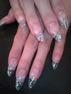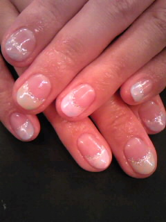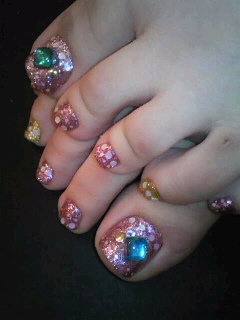 ☆キラキラ☆ 今日は一日雨ですが、明日は気温が30度まで上がるみたいですね〜! 真夏かっ!とつっこみたくなりますね^^! 暖かくなるにつれてキラキラアート人気です! 先端に乱切りのホログラムが入ったクリアスカルプです♪ こちらは見えにくいですが新作のデザインフレンチです♪ 私のフットもラメできらきらに〜♡ 手も足も綺麗になるとテンション上がりますね〜!!! AYA
