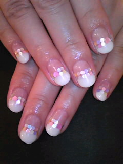 白フレンチの境目にパステルのホログラムを並べて♪