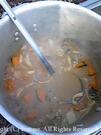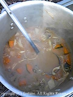 計画性のない私達はガスコンロを予約し忘れ、炭で作ったので