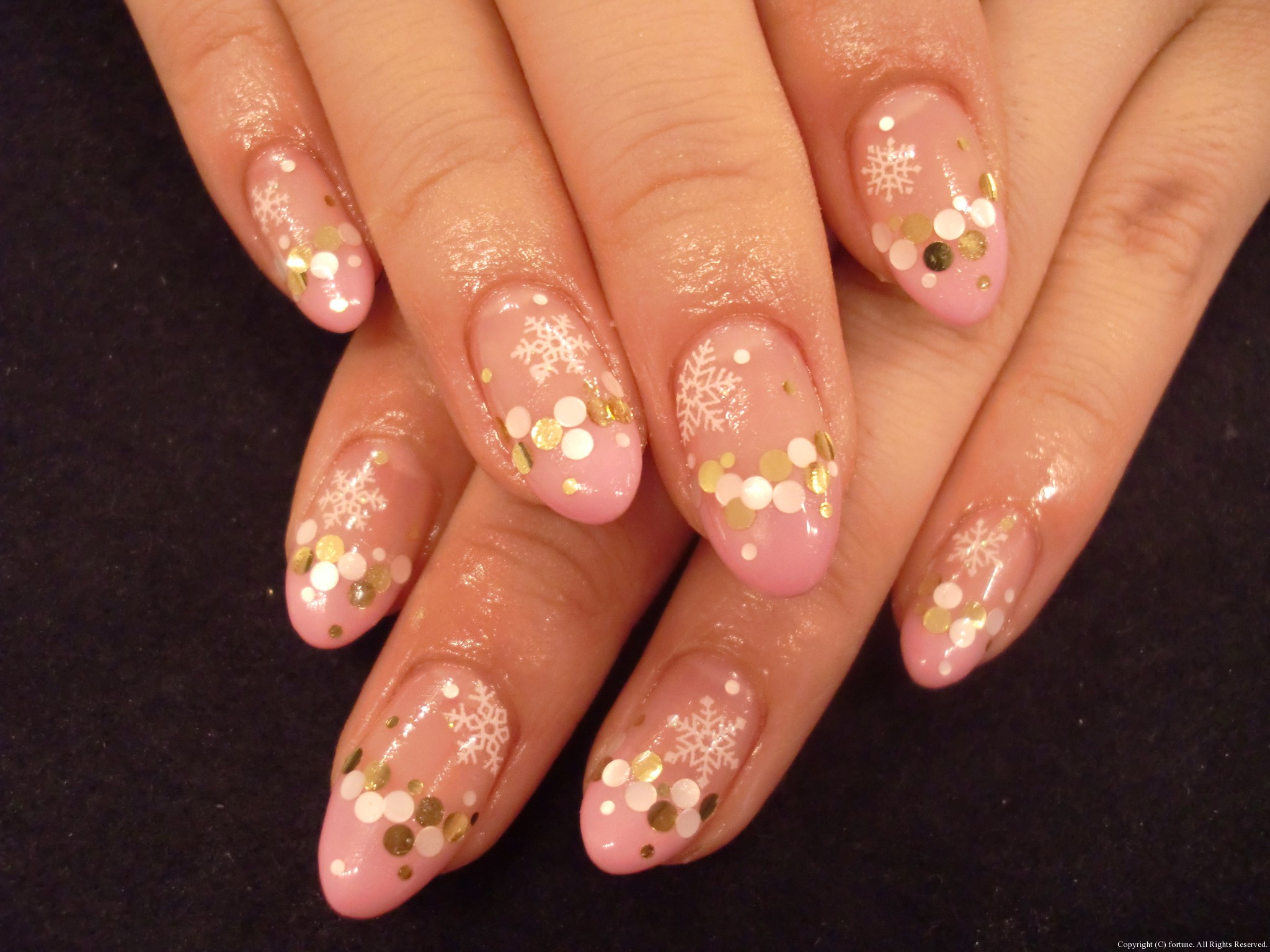 かわいいピンクのグラデーションに、ホログラムと雪の結晶をつけた