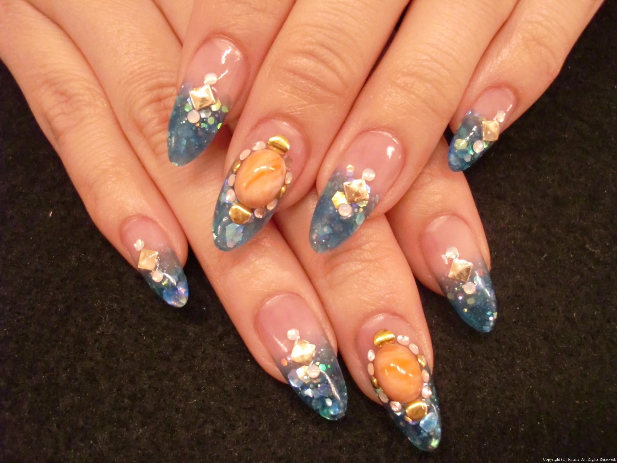 ハンド&フット フットのジェルネイルをされる方が増えてきました♪ 何も塗らずにサンダルは履けませんからね☆ ピンクに白バラシールが可愛いです♪ 足のお爪に自信の無い方も是非やってみて下さい! 定期的にケアをするだけで、見違える程キレイになります。お爪の正しい切り方もお教えいたしますので♪ 私は最近、華やか夏ネイルにチェンジ!! ブルーグリーン系のグラデにストーンつけました♪ ネイルが派手なだけでテンション上がります〜☆★☆ NAOKO