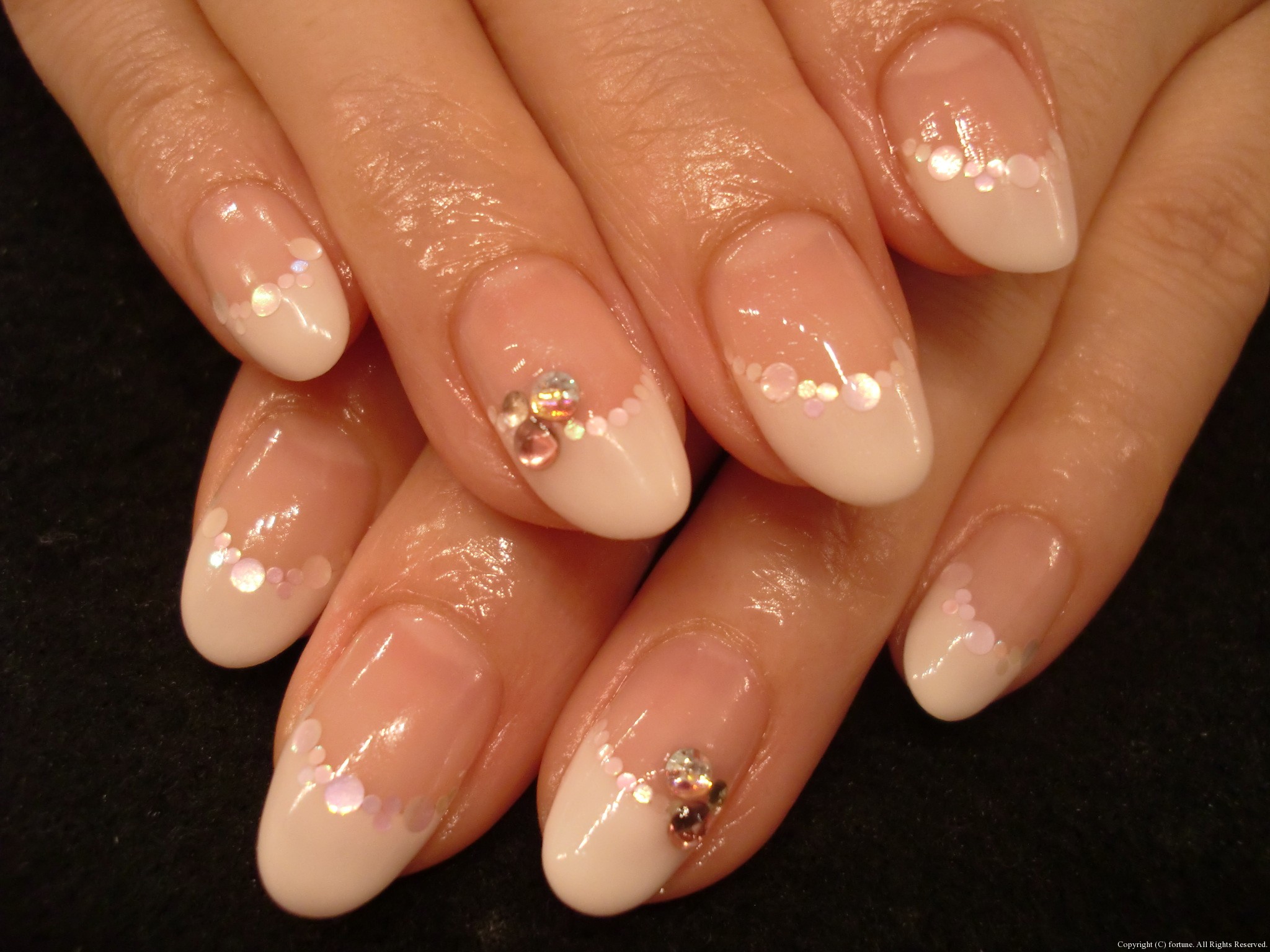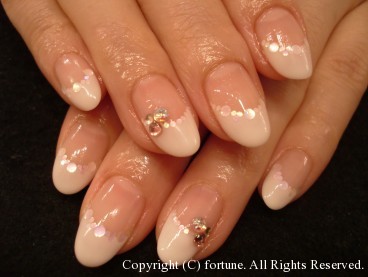 ホワイトフレンチ&ホロで清楚なネイルです♪ストーンをのせてキラリ☆