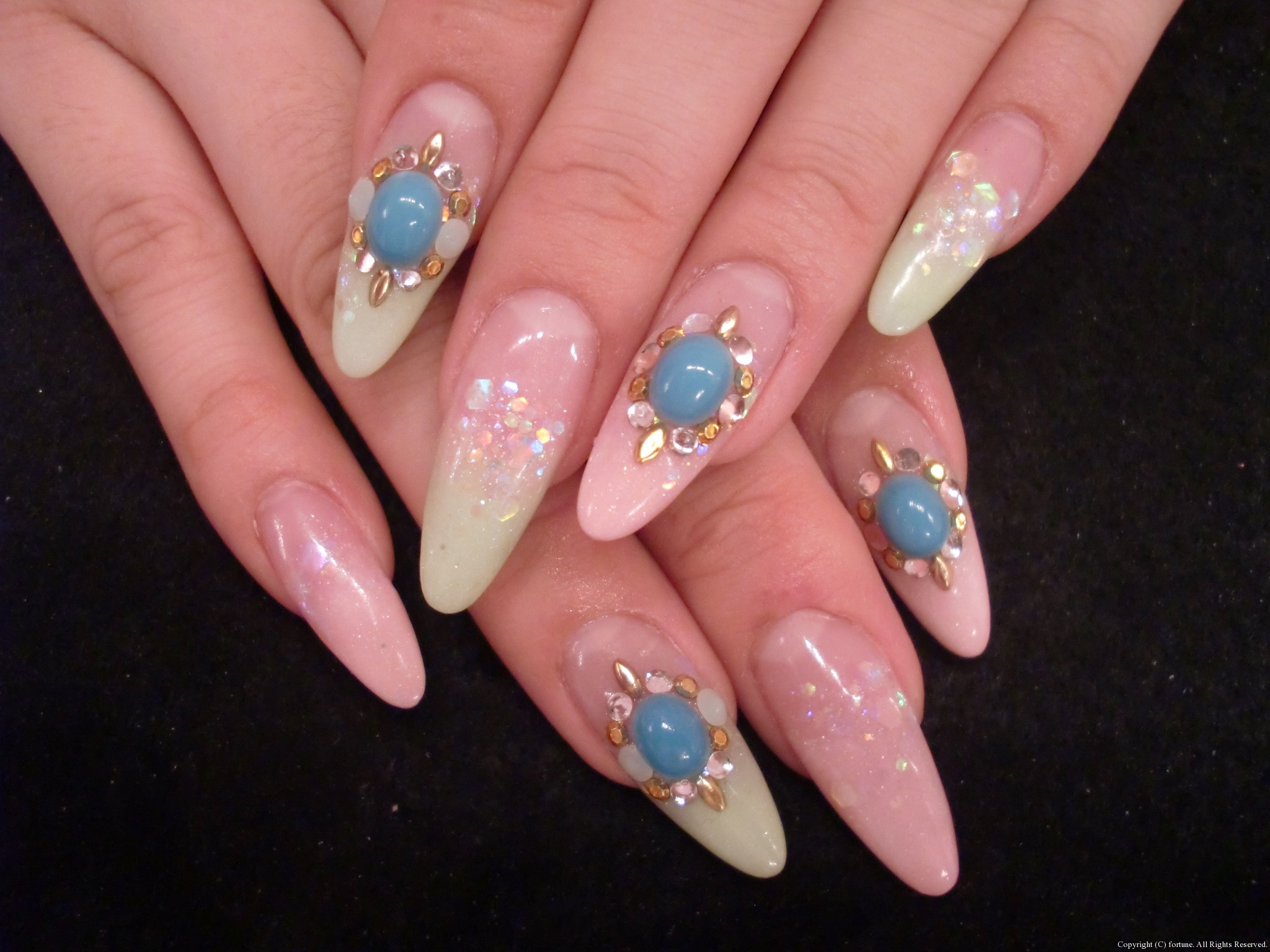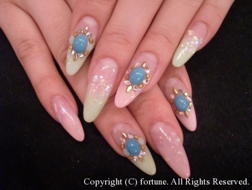 私は緑とピンクのグラデーションスカルプにストーンで夏っぽく♪
