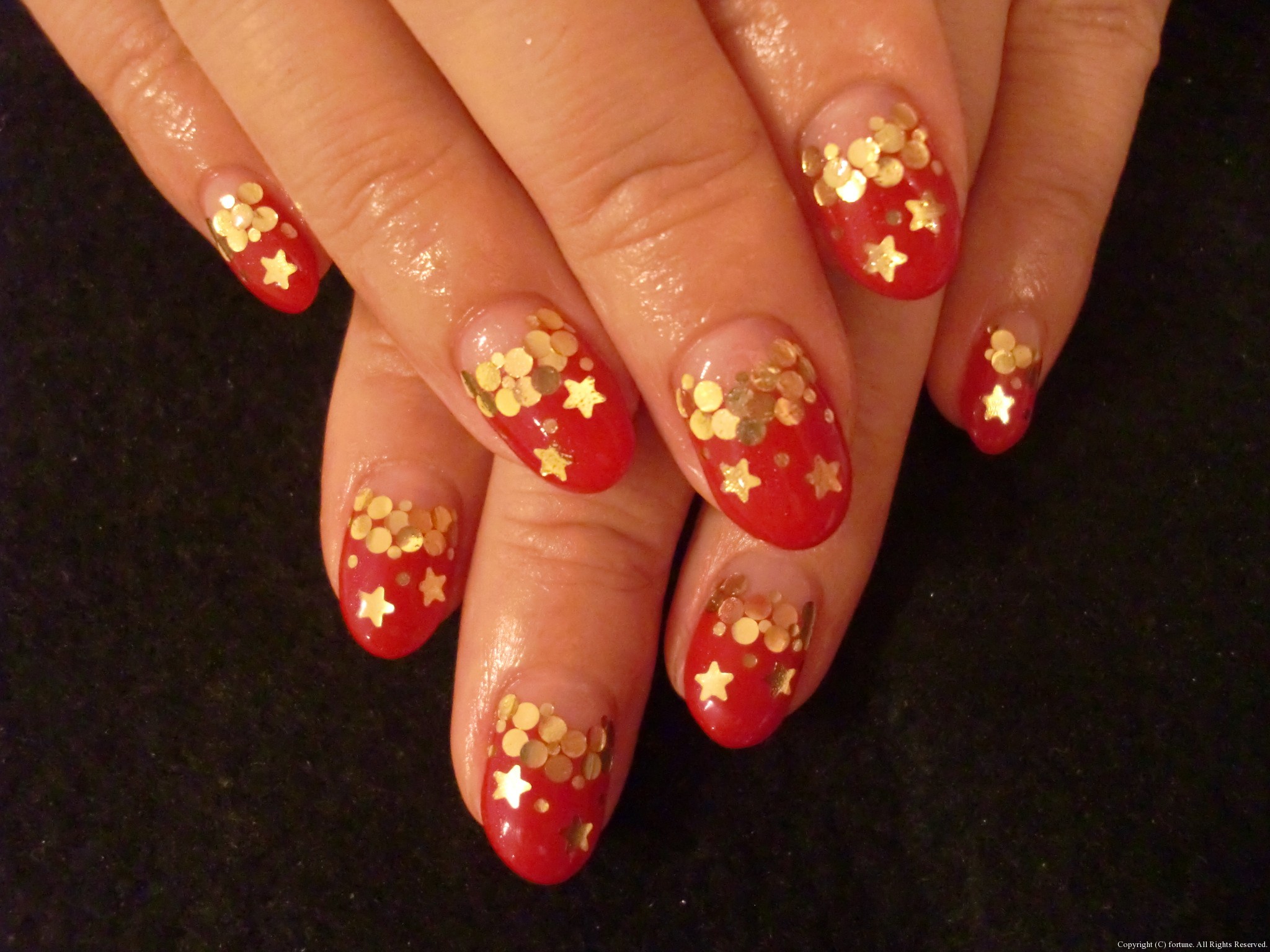 ネイルチェンジ♪ しました☆今回は白を使いたかったので白フレンチにレースを♡ ストーンとストーンリボンをつけました! 無性にしたくなる色といえば“赤”!!先日もお客様が「今日は赤の気分!」 といことでされたネイルです♪ 赤の逆フレンチにゴールドホログラムをつけてキラキラかわいく★ 皆様もお好きな色・デザインをお楽しみ下さいね! AIKO